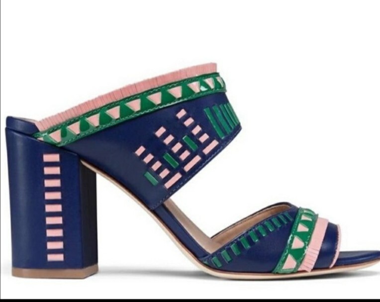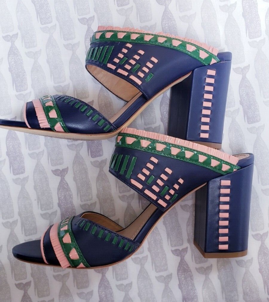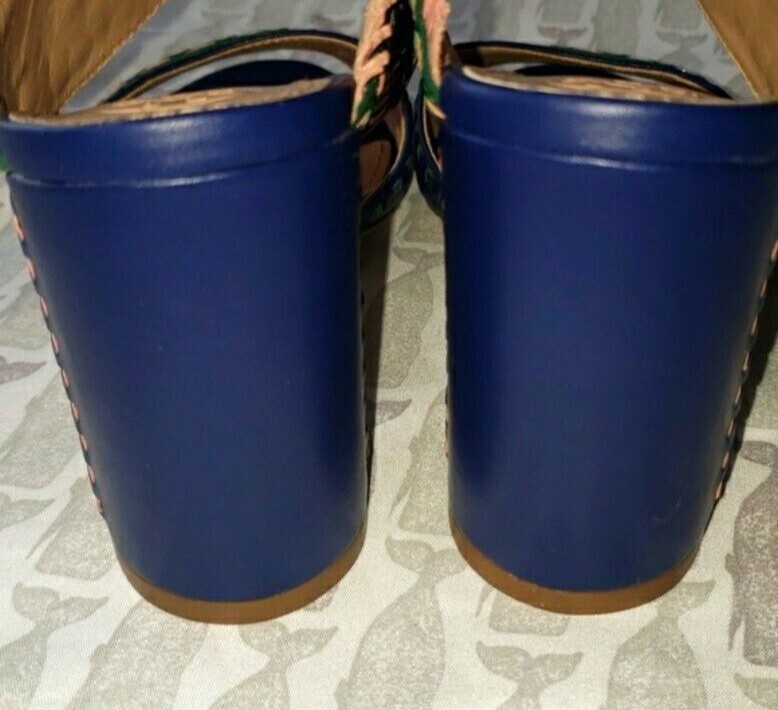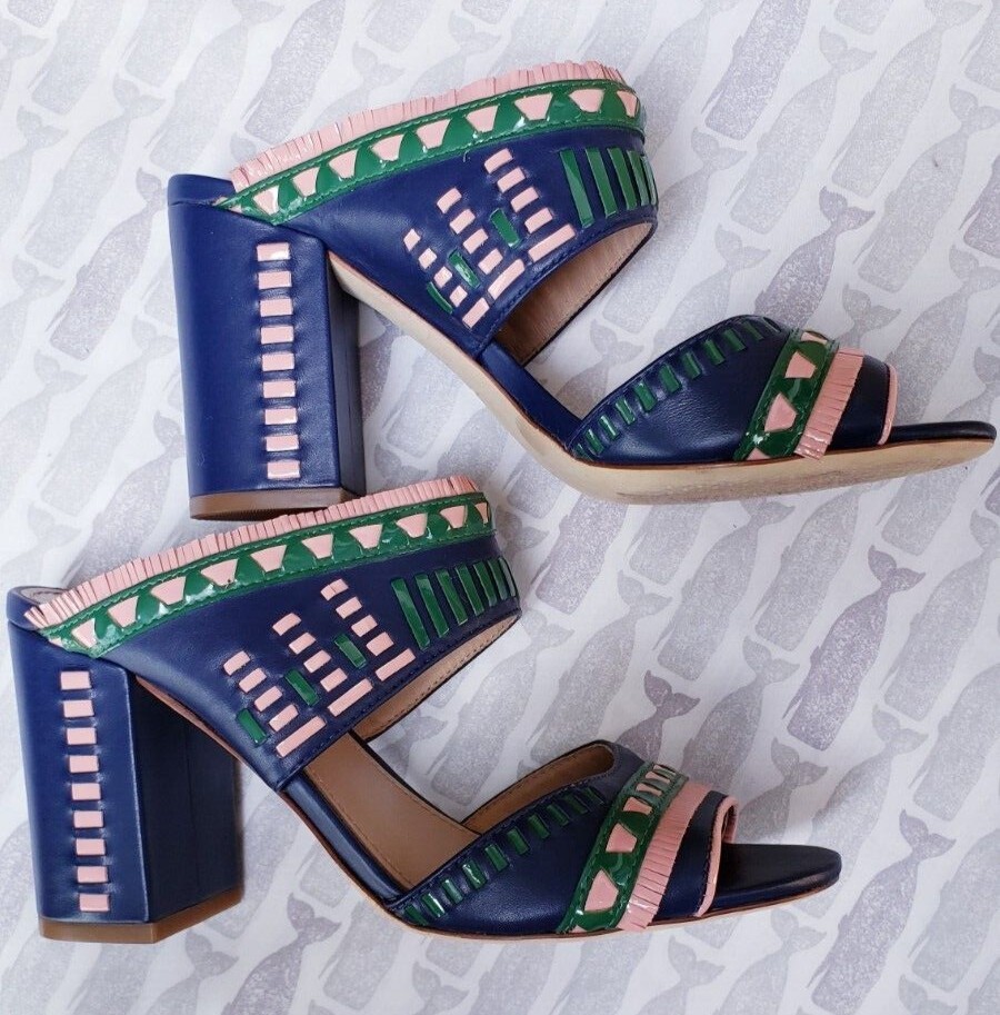 Tory Burch Blue Leather Heels Topanga Mule Size 7 NWOT 350