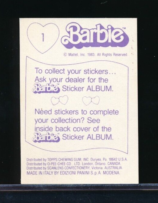 • 1983 PANINI BARBIE 1 ALBUM STICKER header card ex cond cool piece