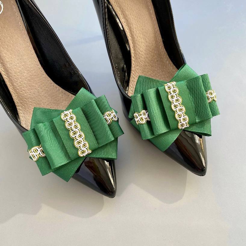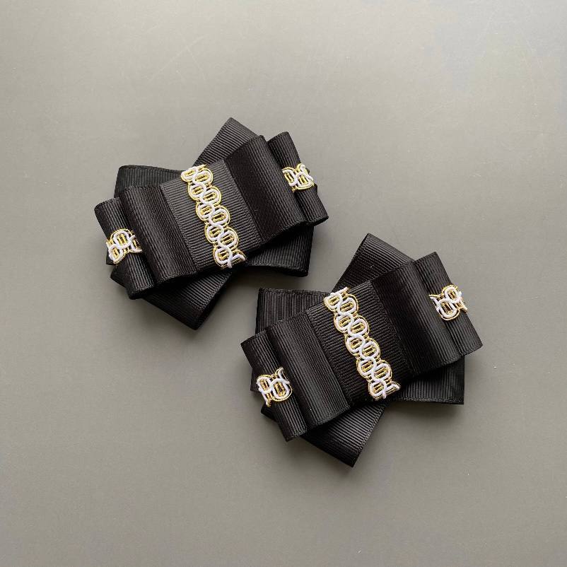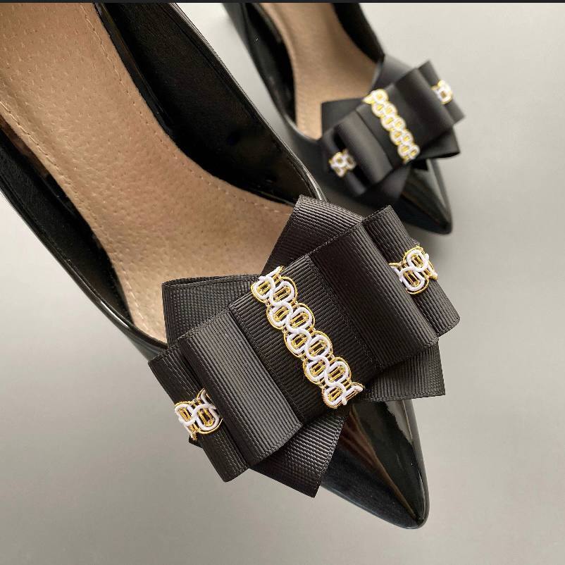 Unique Black Shoe Clips with Handmade Ribbon and Bow for Wedding Accessories