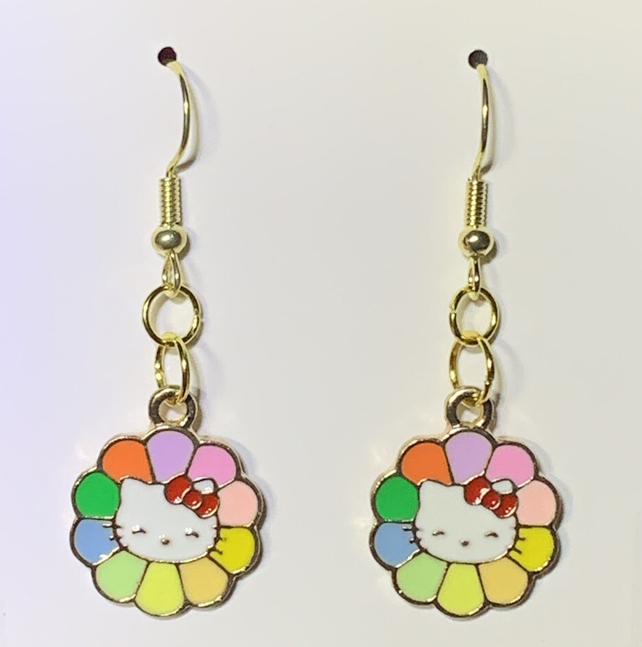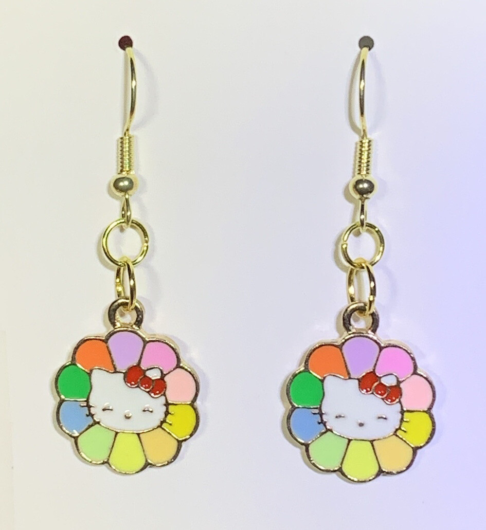 Gold Hello Kitty Flower Drop Dangle Earrings