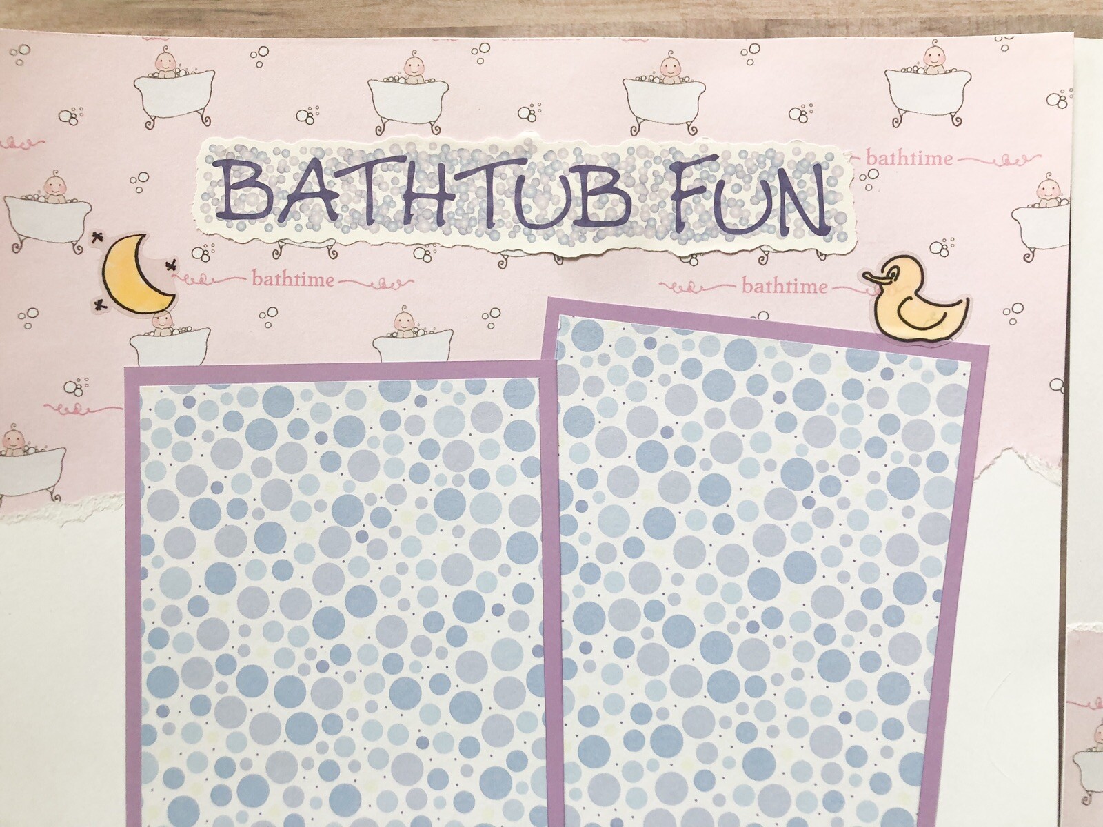 Baby Girl Bath Scrapbook Layout, Baby Scrapbook Pages, 12 by 12 Baby Girl Pages
