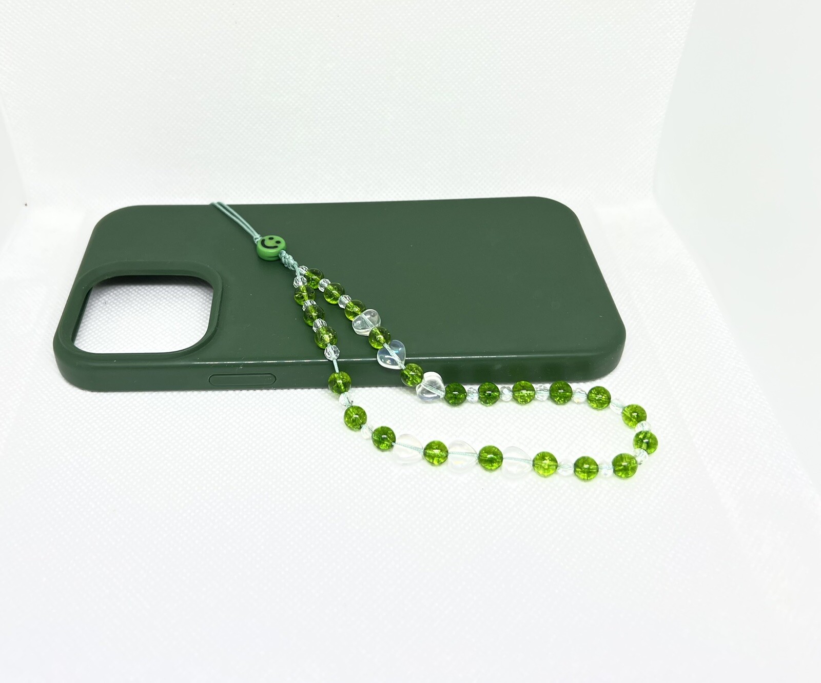 Green Peridot Crystal Beaded Phone Wrist Strap, SunCatcher Charm, Camera Strap