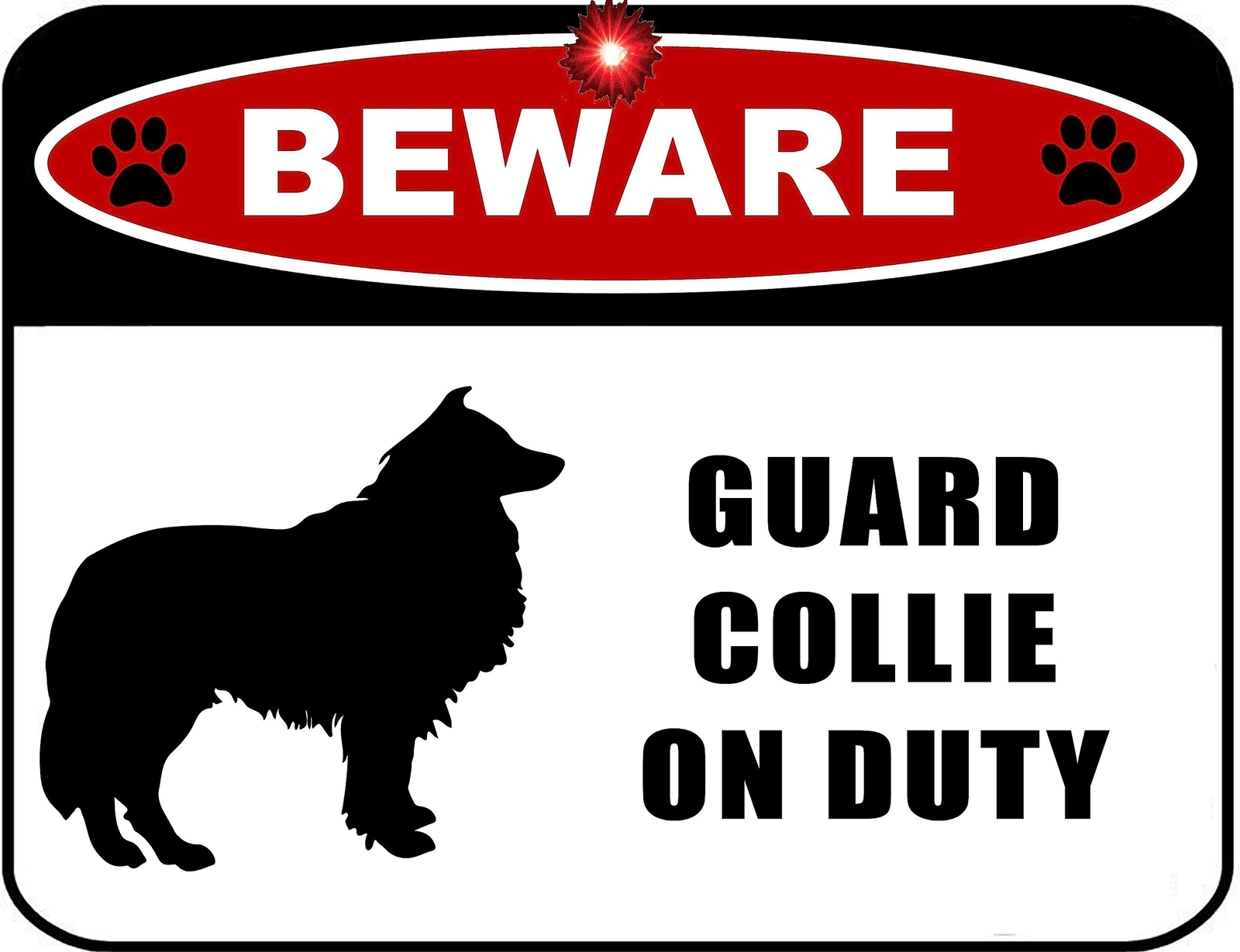 Blinking Red LED Beware Guard Collie On Duty 11.5 x 9 Laminated Dog Sign