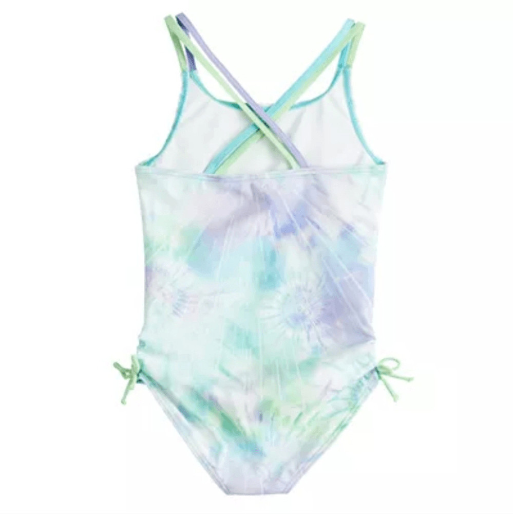 Girls 7/8 Star Wars Mandalorian Grogu Baby Yoda One-Piece Swimsuit Green Tie Dye