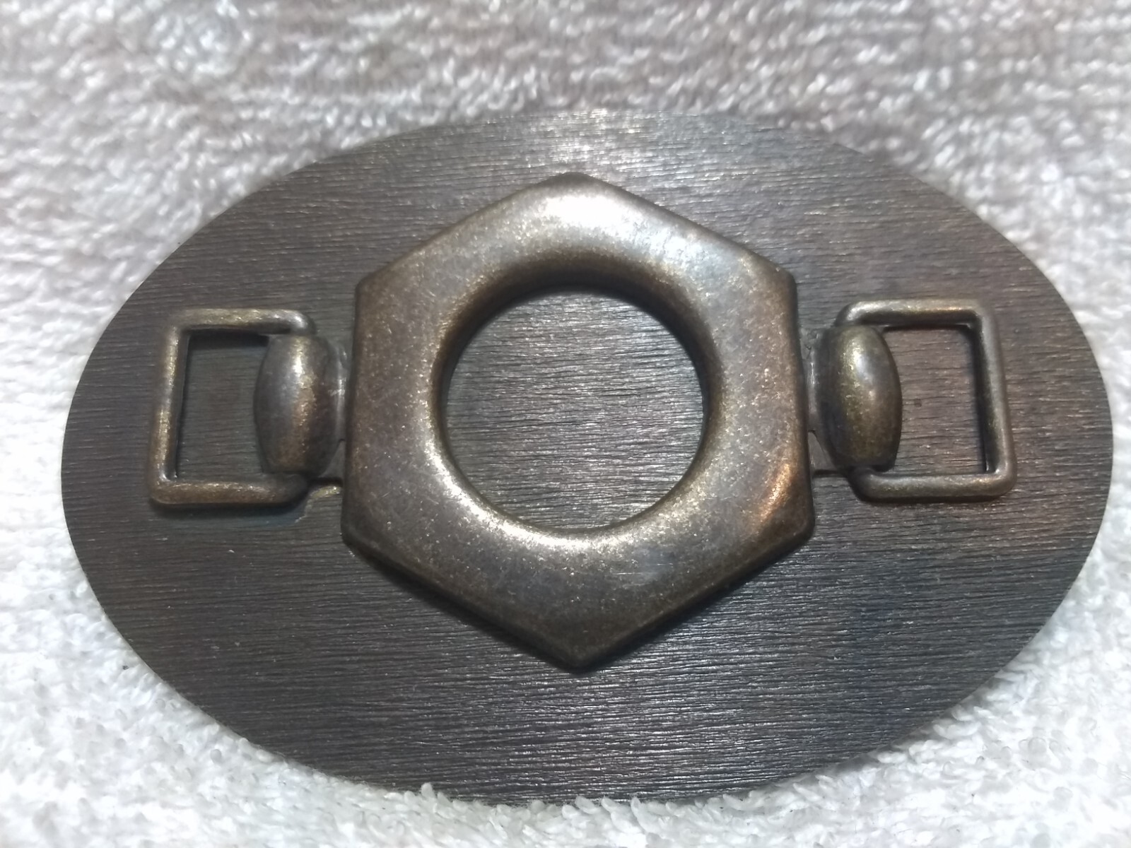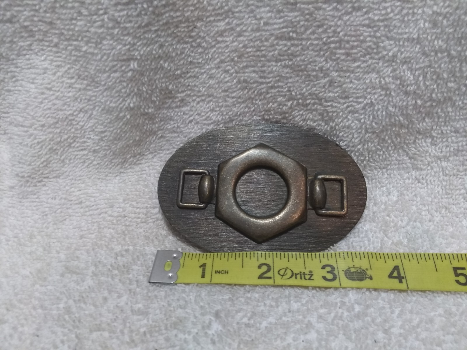 как выглядит Gold Dull Metal Clamp Oval Buckle Ornate Design On Front Good Usable Shape фото