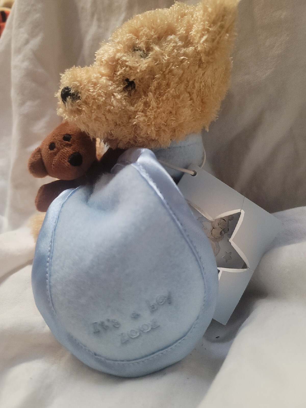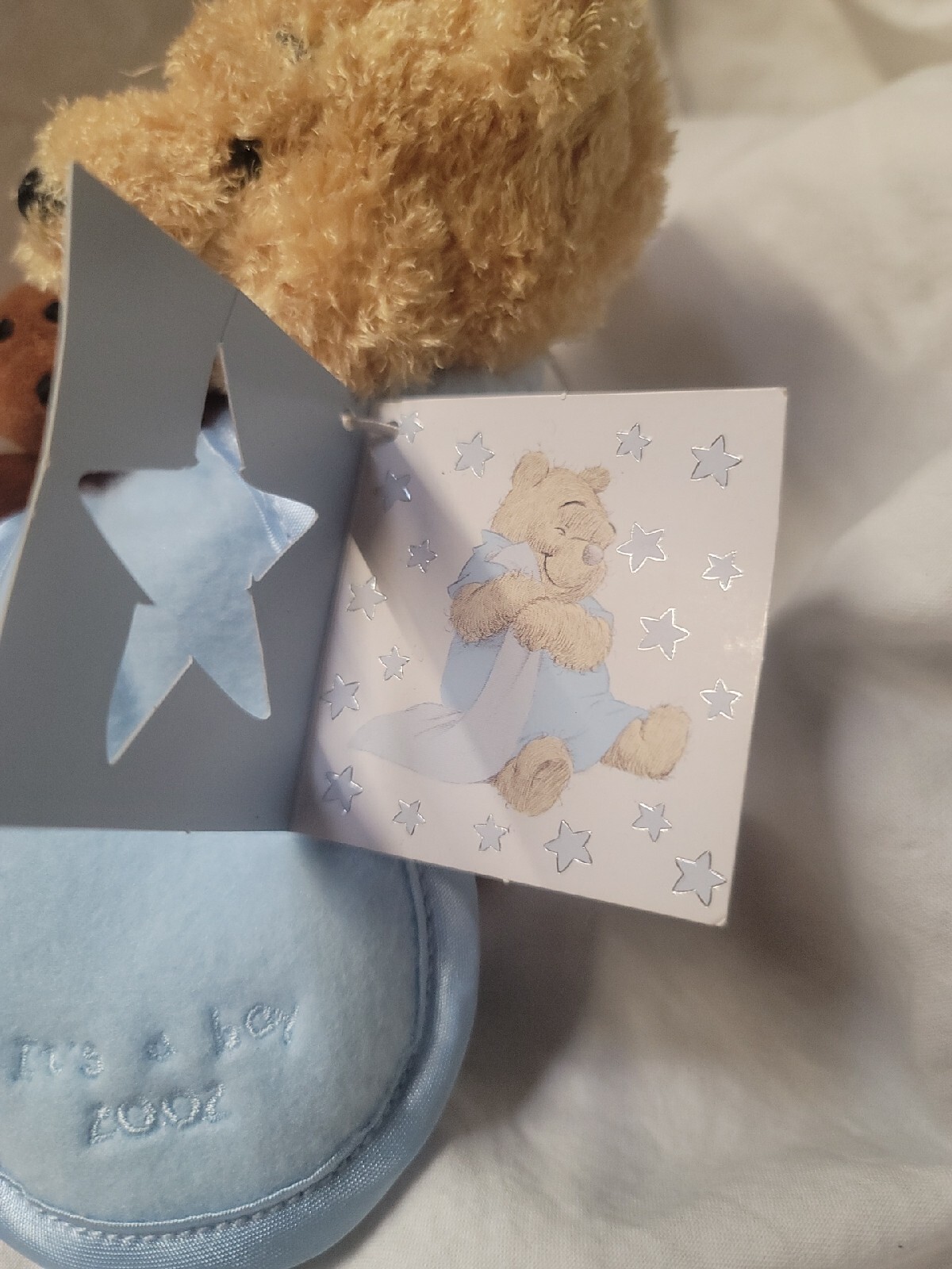 2002 POOH It's A Boy Holding Bear UK Disney mbbp Bean Bag Plush beanie