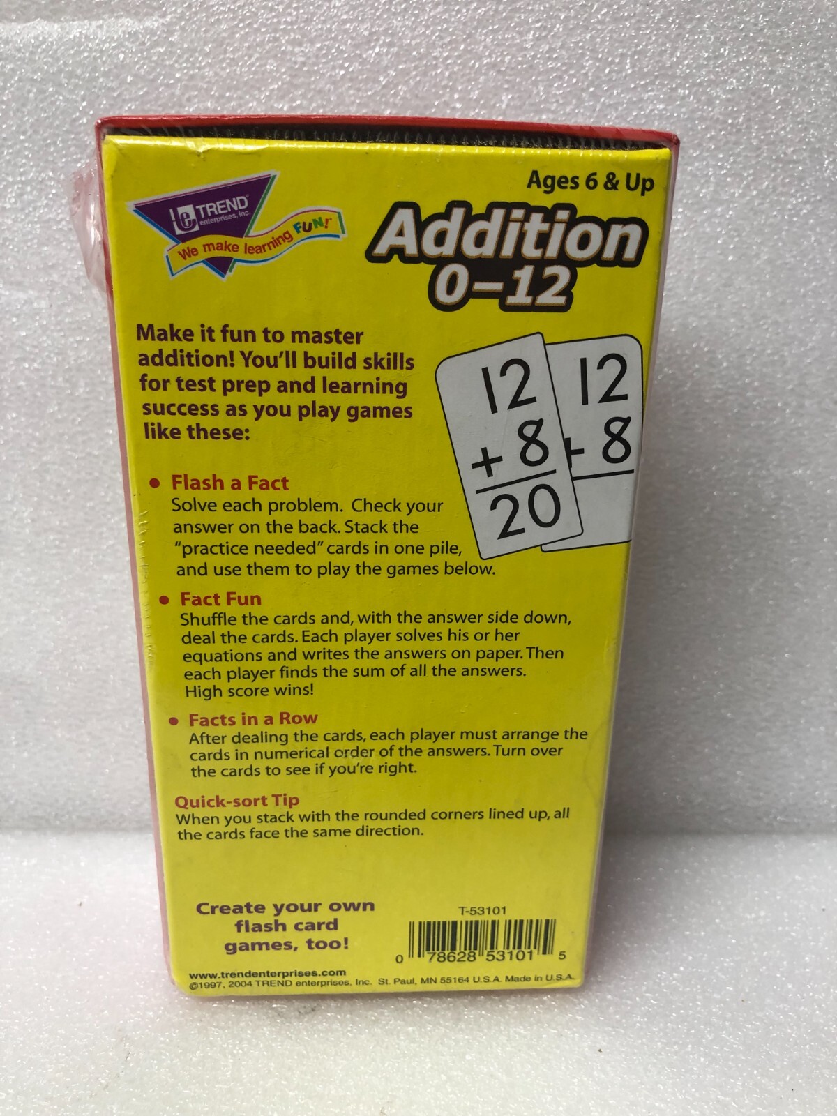 NEW SEALED TREND Addition 0-12 Flash Cards, 91 Self-Checking Cards, Age 6 ,