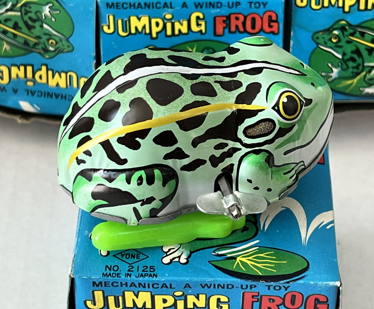 12 VINTAGE YONE JUMPING FROG TIN 1960s WIND-UP KEY CLOCKWORK TOY JAPAN 2125 BOX