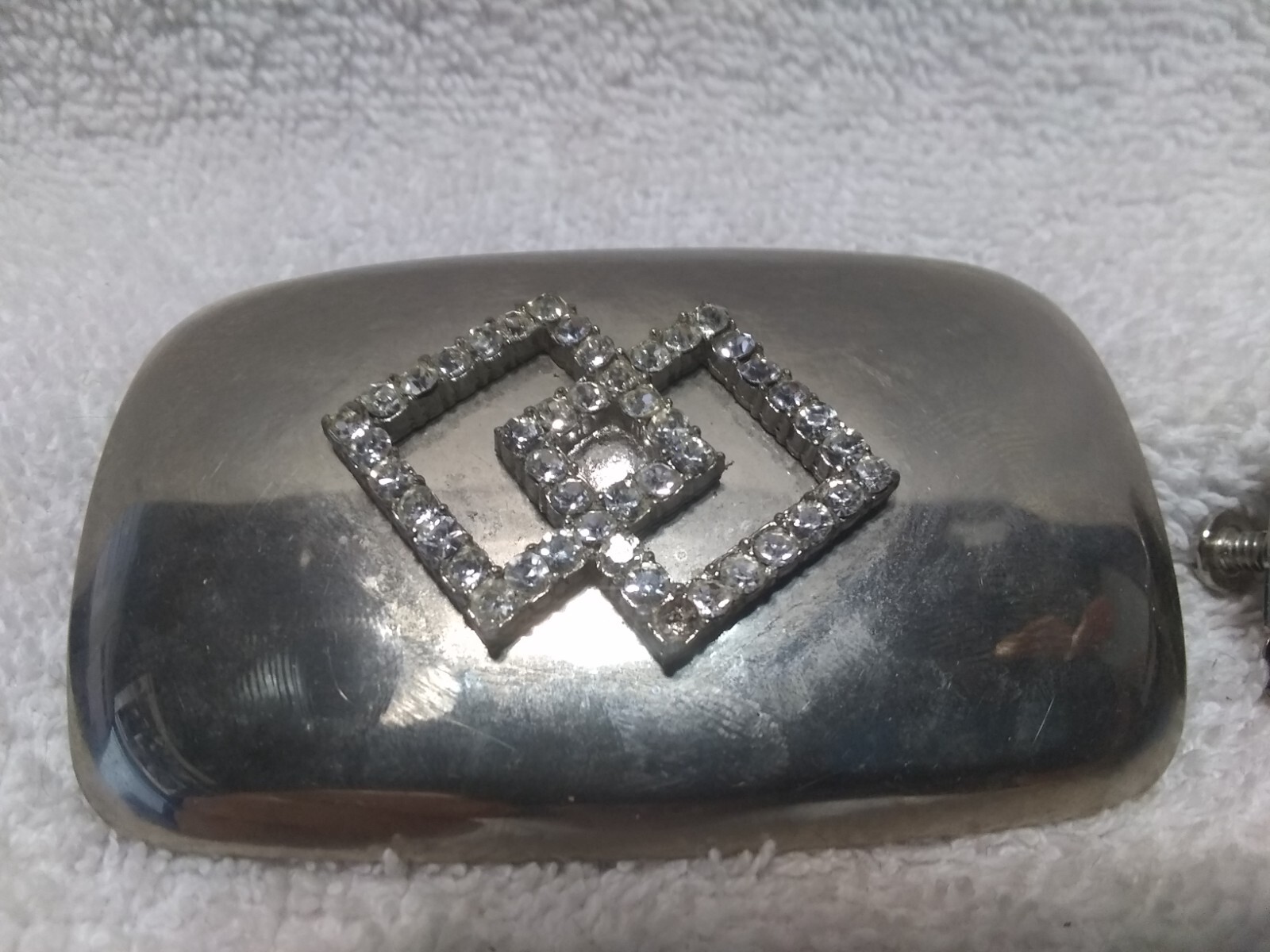 как выглядит Silver Buckle Sparkling Double Square Center With 1 Matching Collar Tip USA Made фото