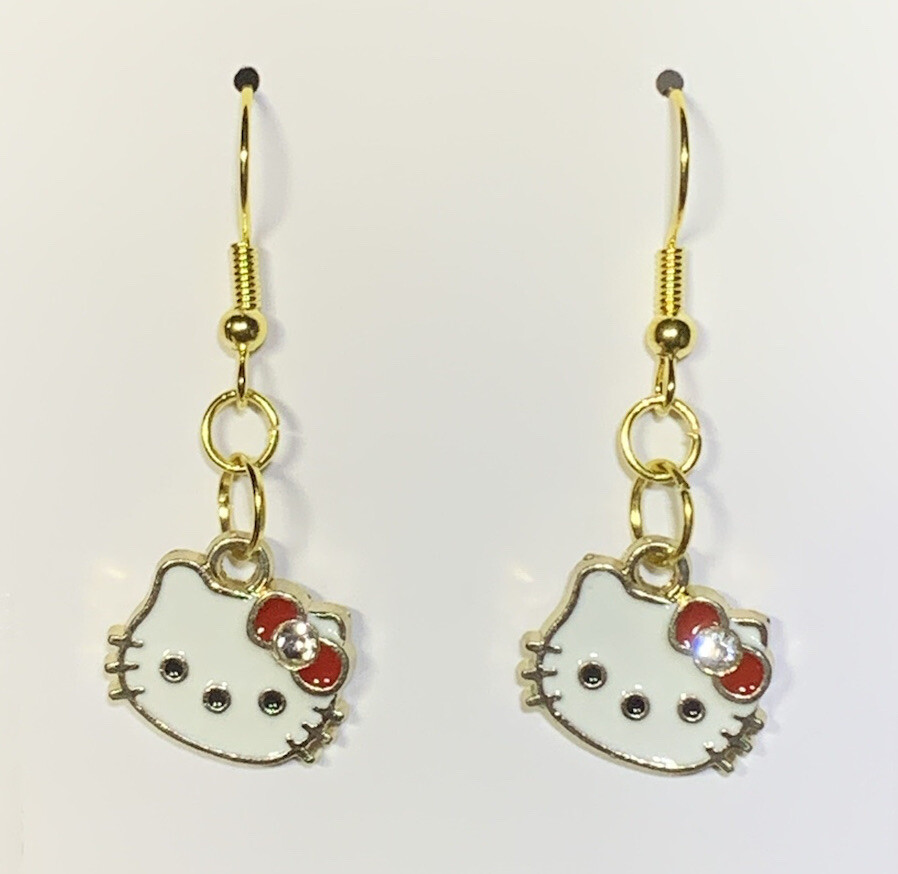 как выглядит Gold Hello Kitty Drop Dangle Earrings фото