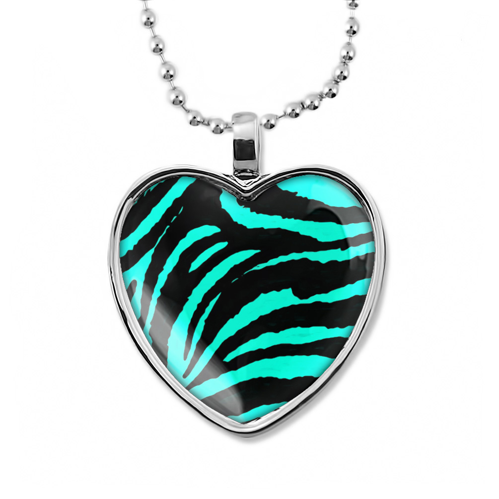 как выглядит Zebra Heart Pendant - Animal Print Punk Rock Silver Necklace фото