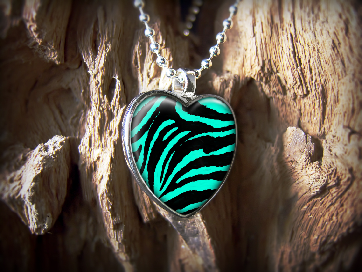 Zebra Heart Pendant - Animal Print Punk Rock Silver Necklace