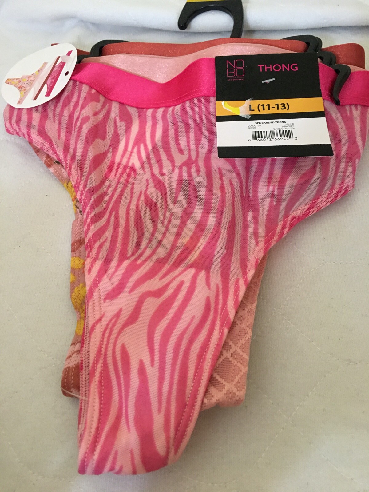 No Boundaries 3 Pairs Banded Thong Panties Women Junior L,XL,XXXL
