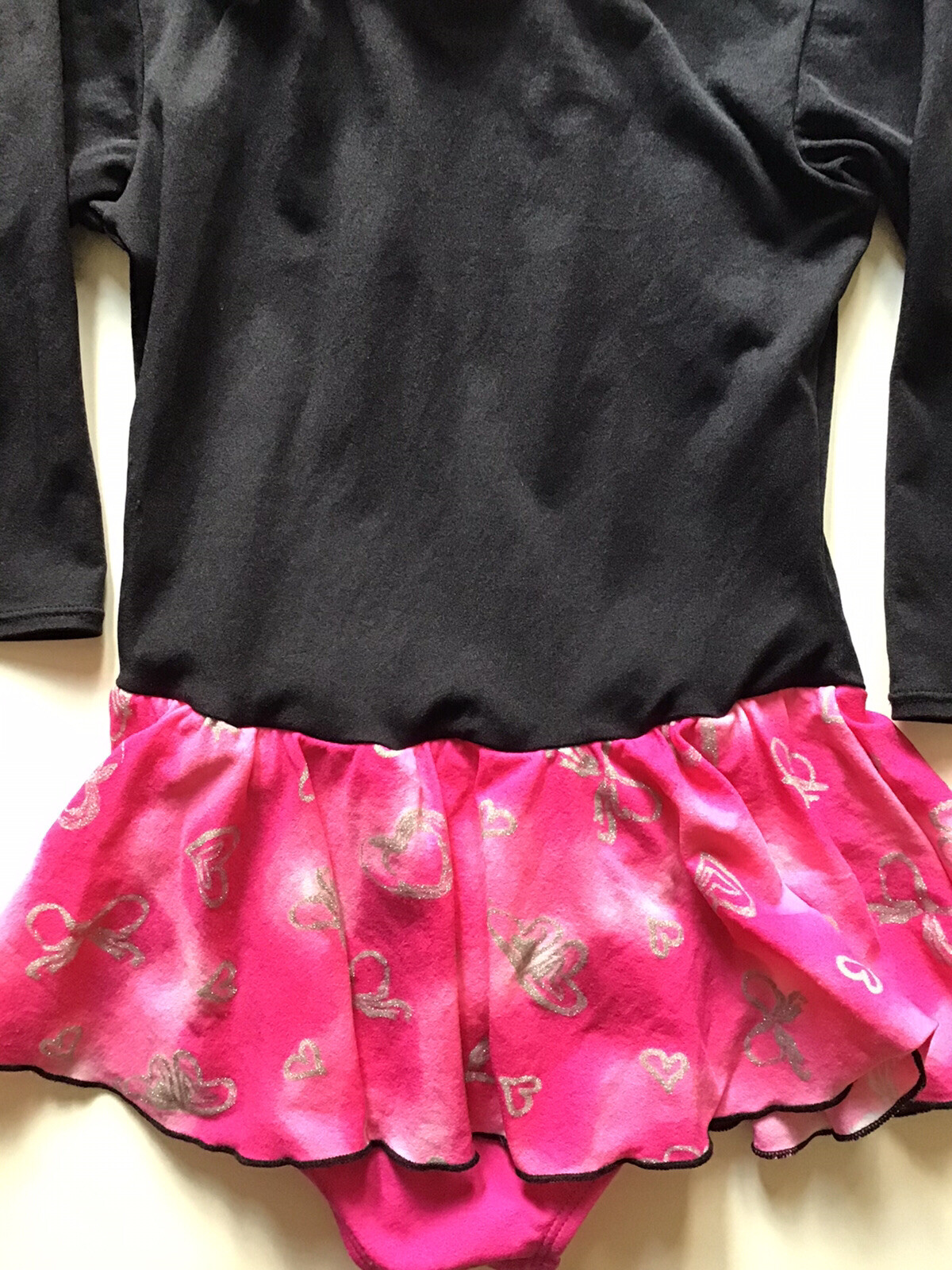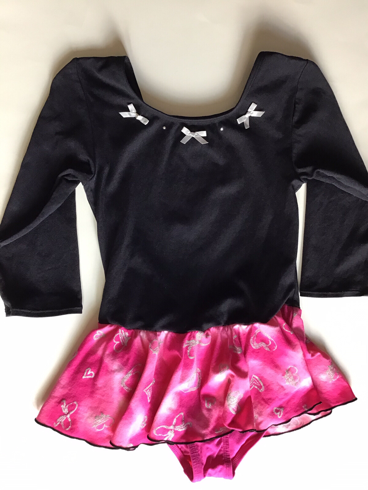 Girls Large 12/14 Jacques Moret Leotard Skirted Ballet Quarter Sleeve Black Pink