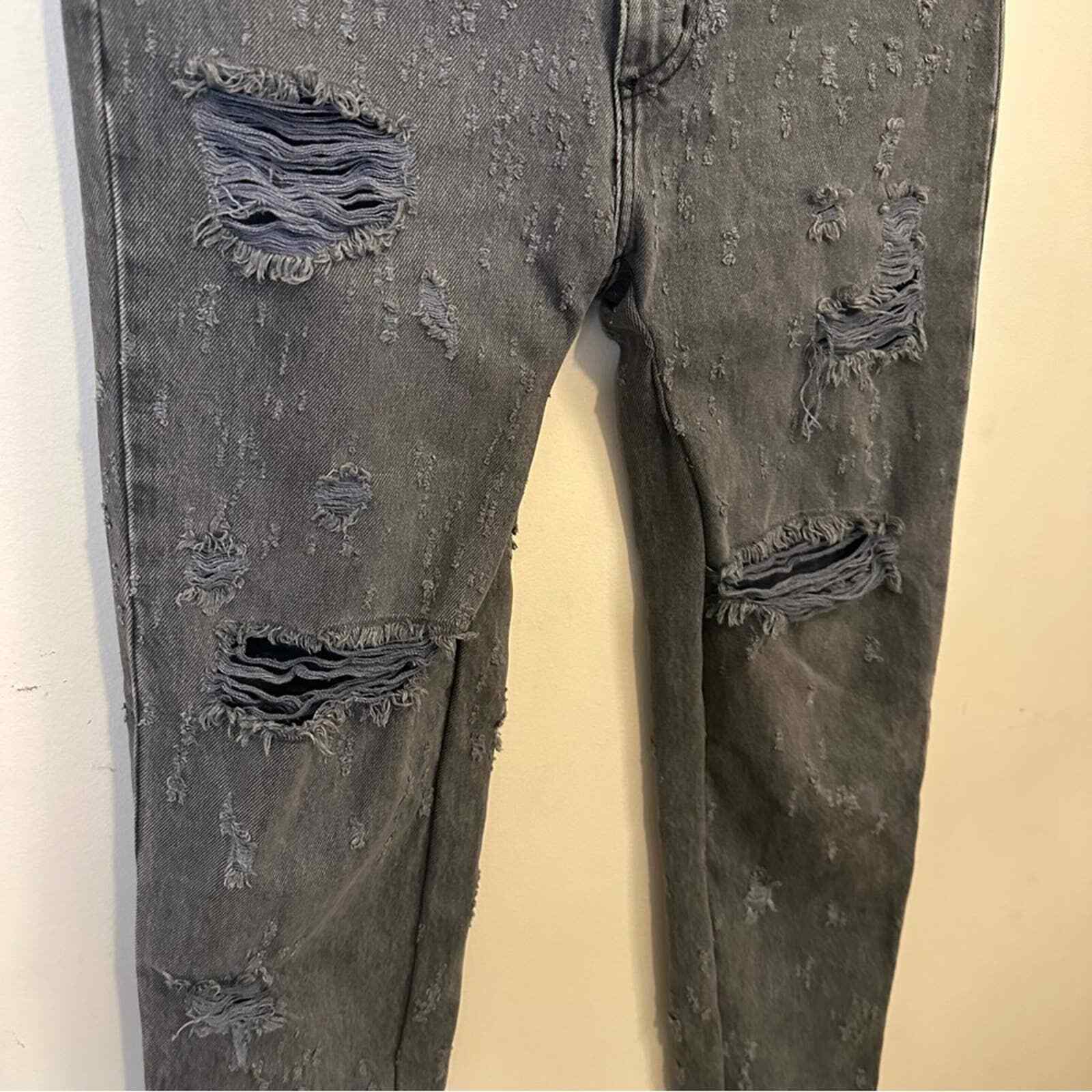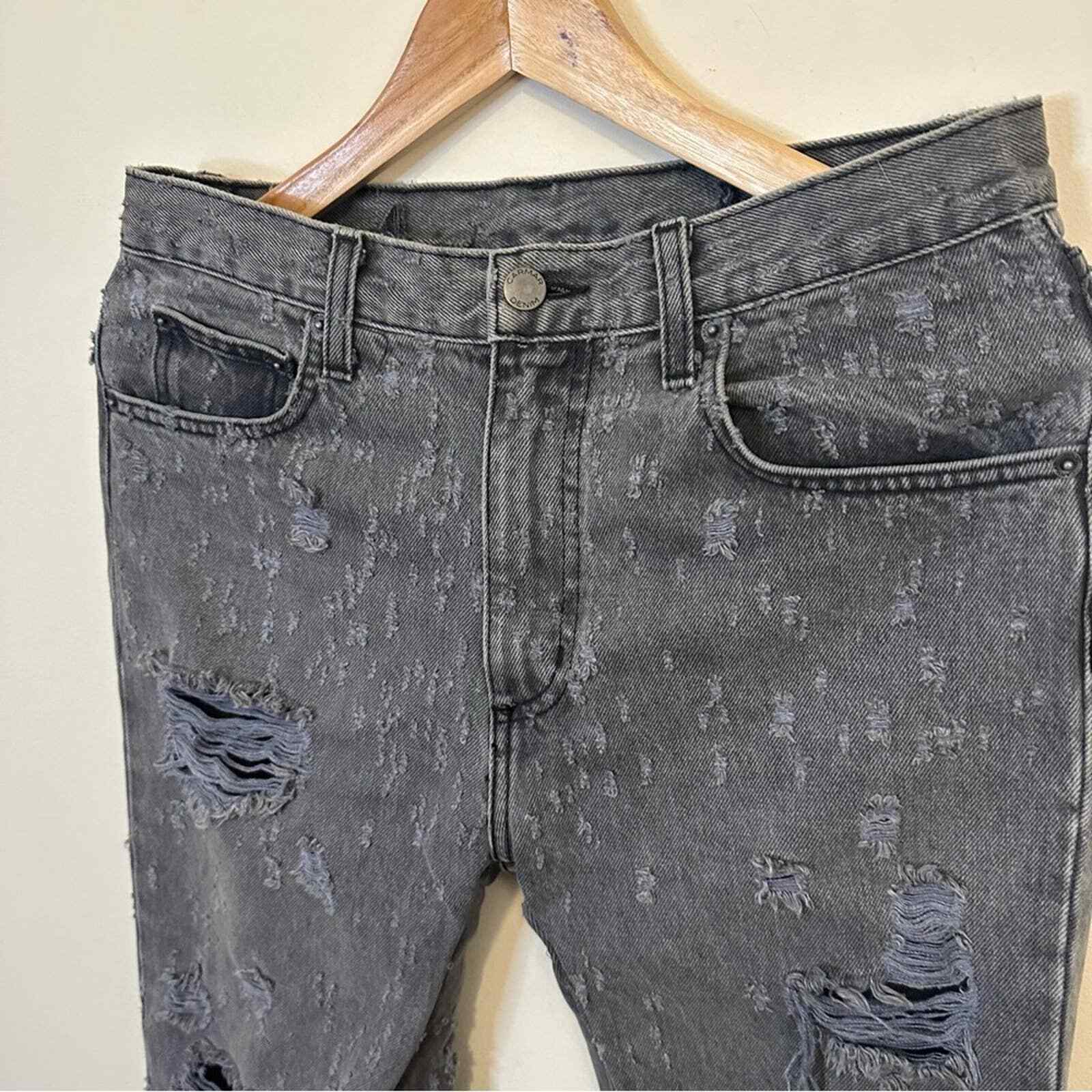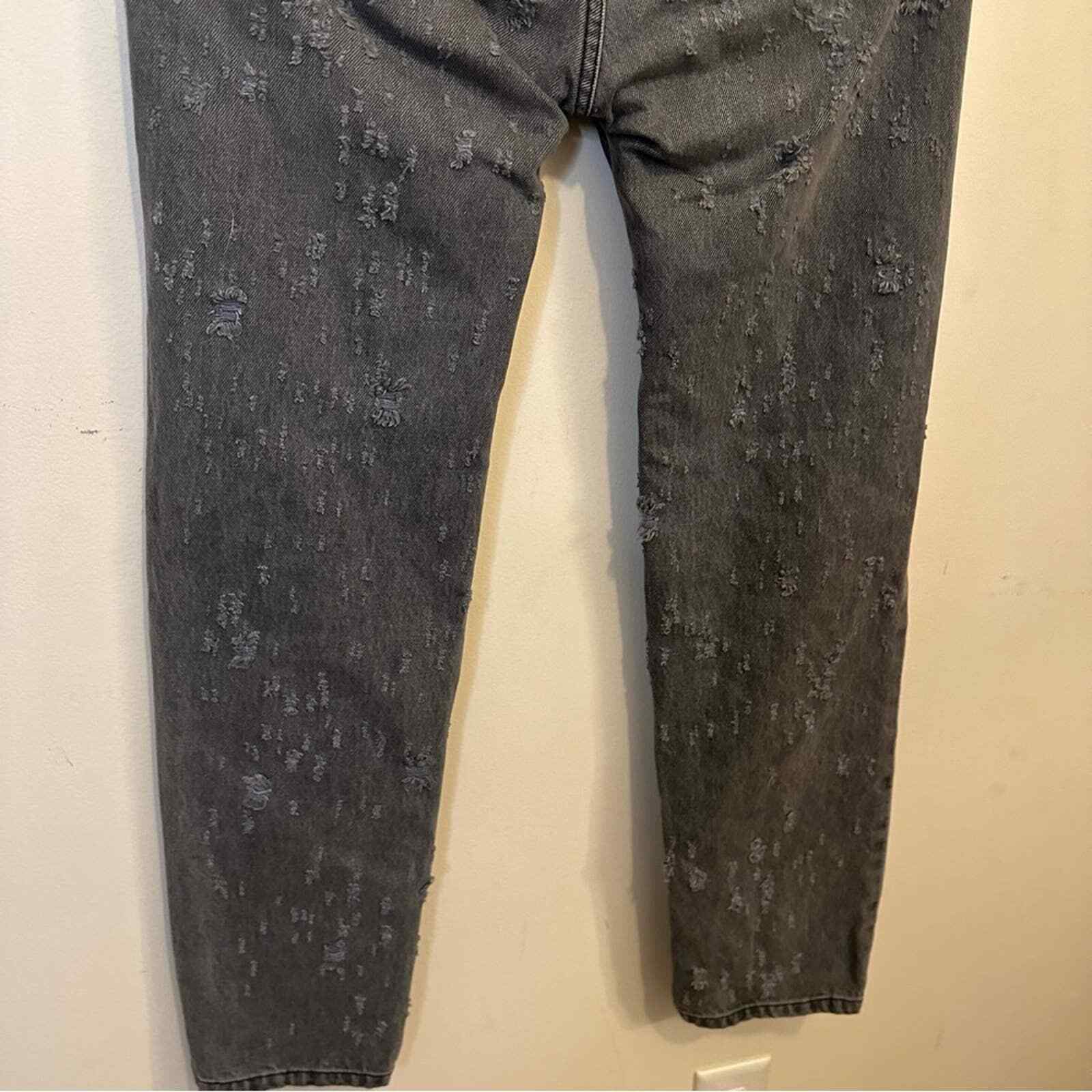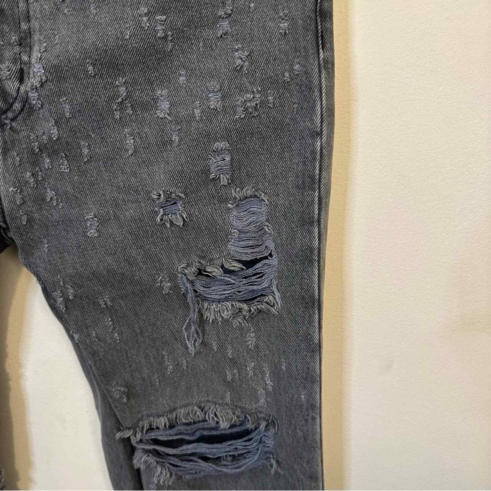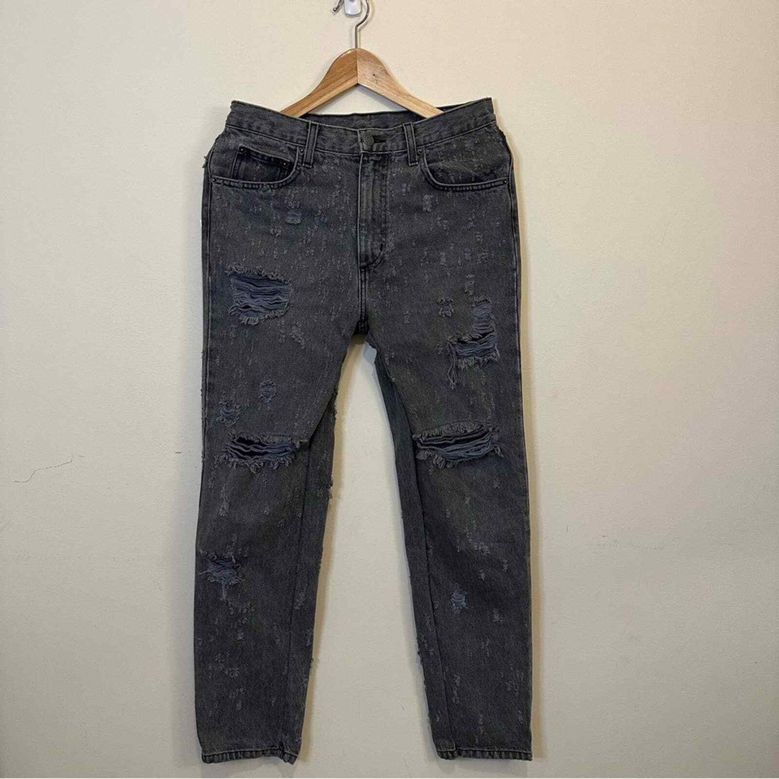 как выглядит Carmar Womens Denim Gray Distressed Ripped Straight Leg Hi Waisted Jeans 28 фото