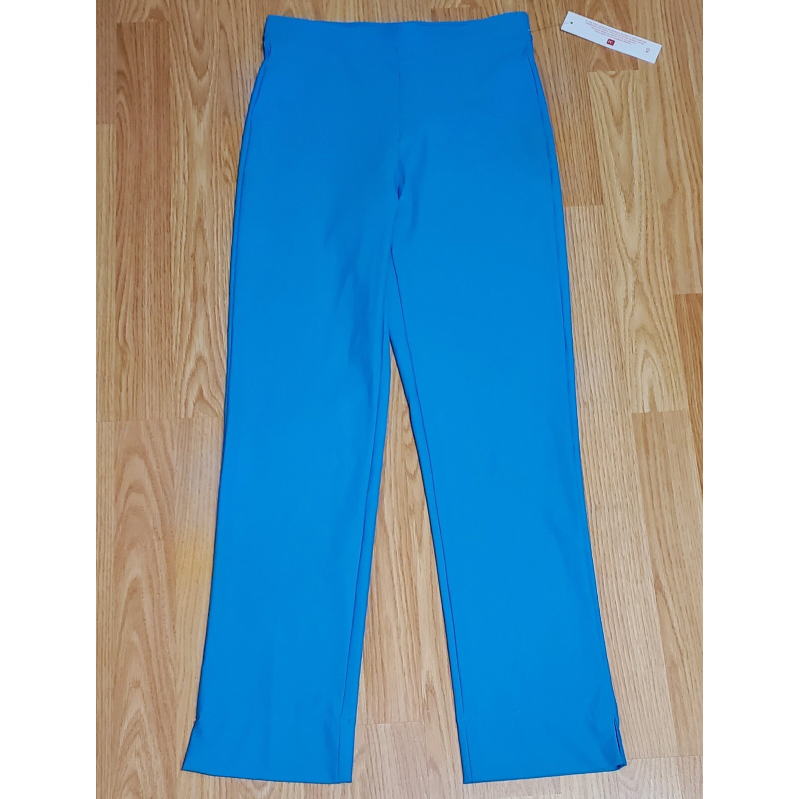 Ic Collection By connie K slim high rise stretch pull on ankle pants aqua blue