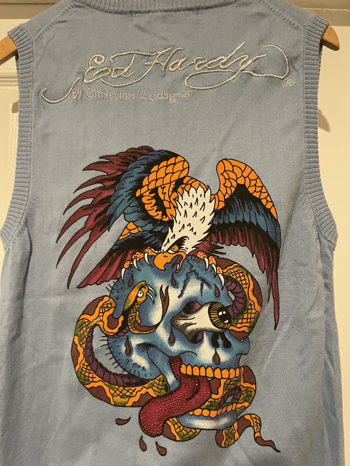 как выглядит Rare Vtg Y2K Ed Hardy Double Sided Pullover Sweater Vest Embroidered Don Hardy фото