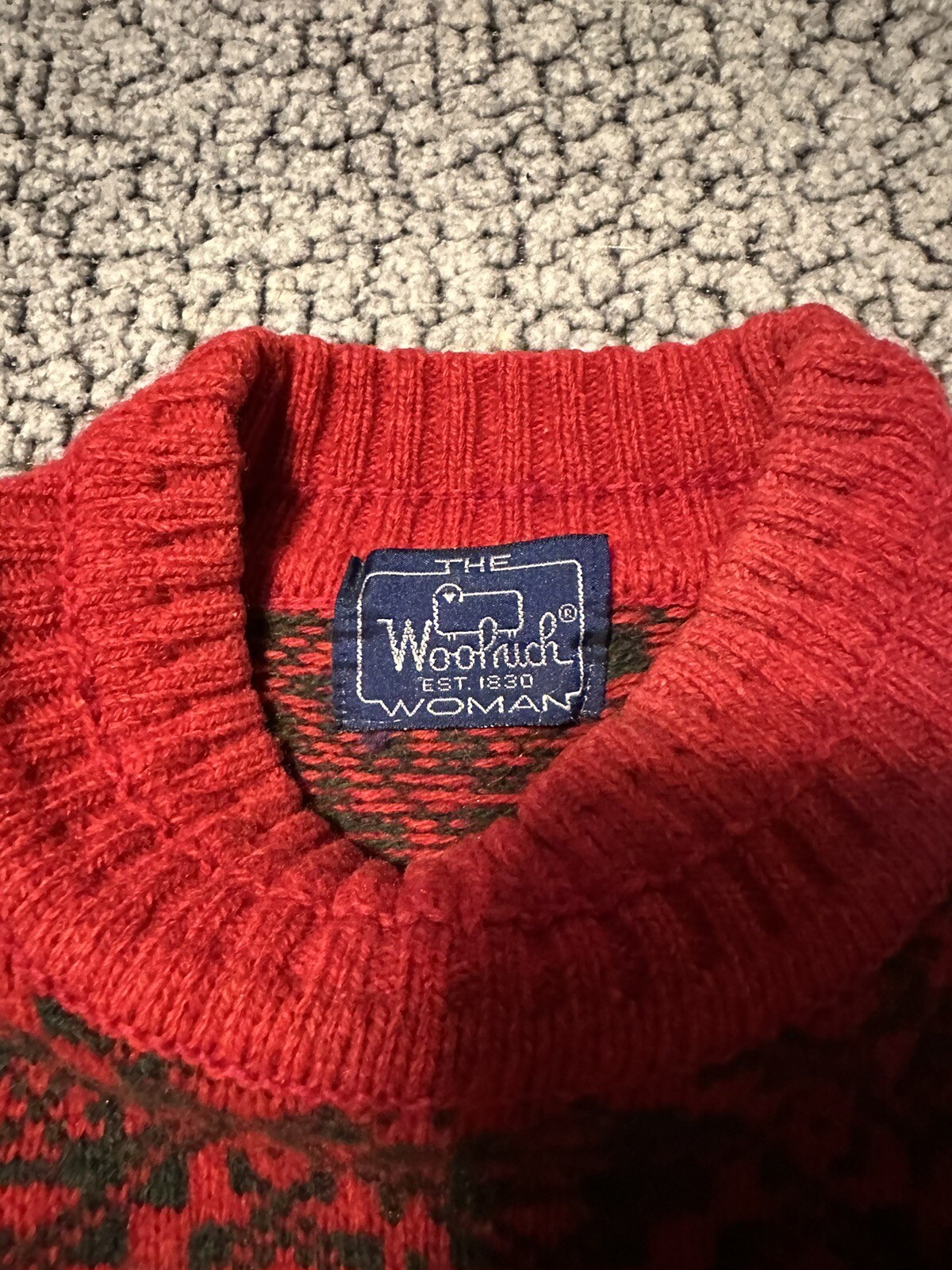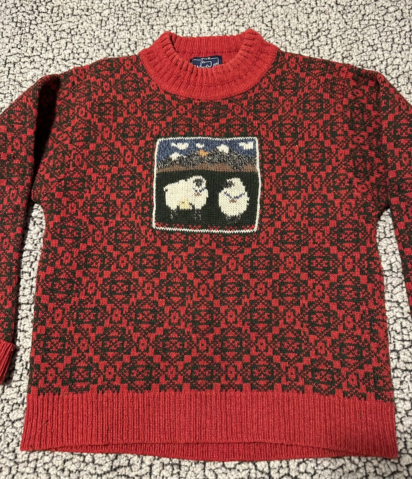 Vintage THE WOOLRICH WOMAN Sweater Size Small - 100 Wool - Red Green w/ Sheep