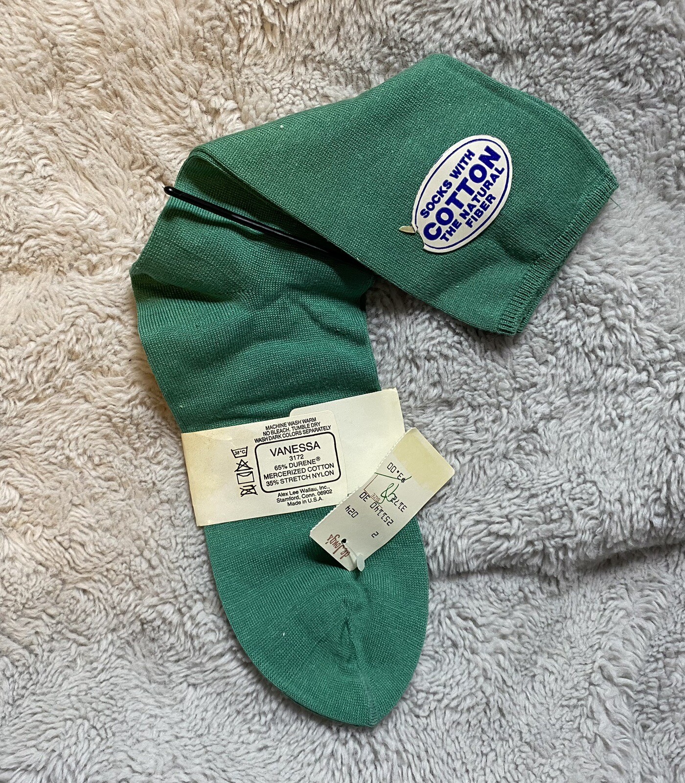 как выглядит Vintage NOS Bonnie Doon Fun Socks Teal Mercerized Cotton Nylon фото