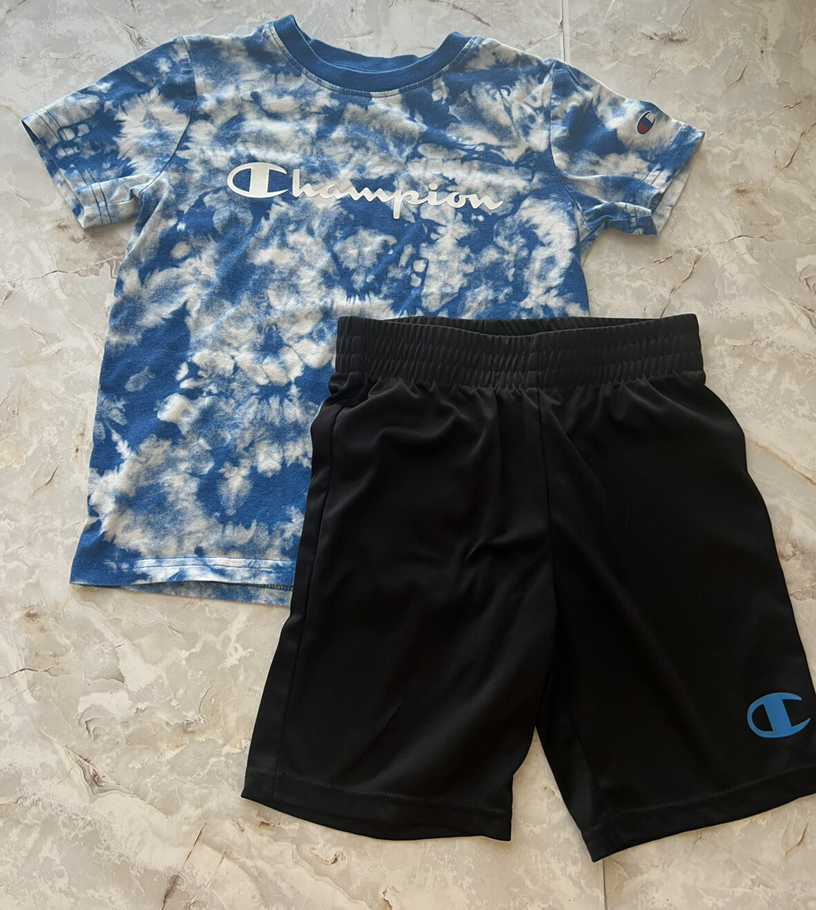 как выглядит Champion Boys , 2 Piece Tye Dye Cloud Print T-Shirt and Shorts Set SZ 6 фото