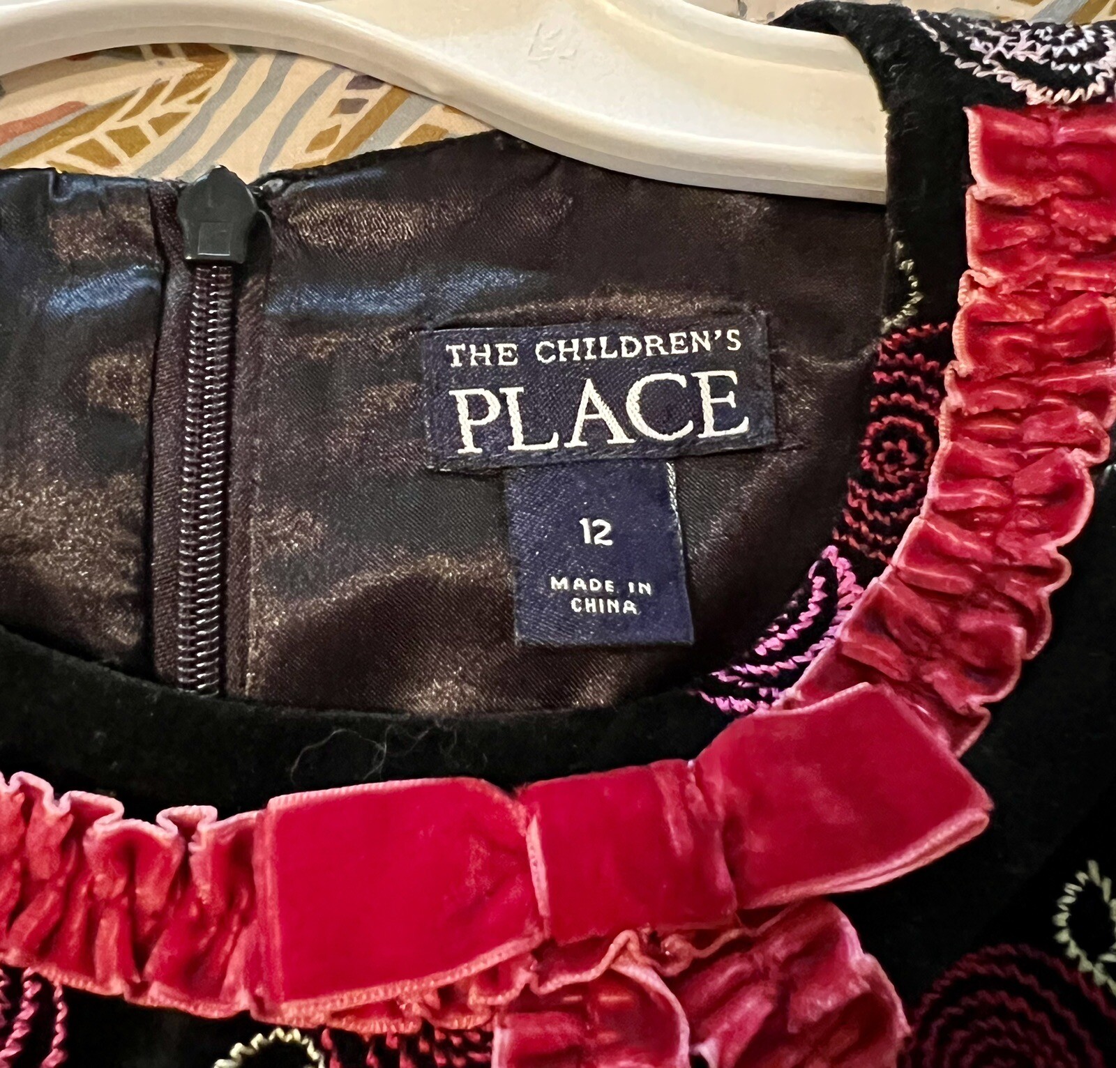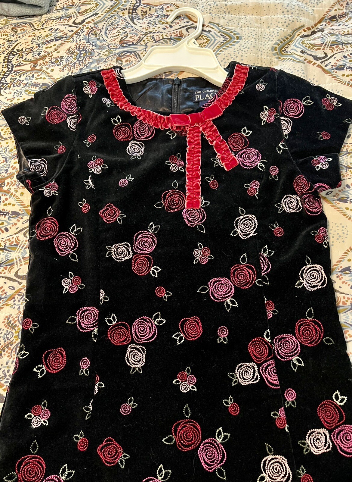 как выглядит The Childrens Place Black Velvet Dress Embroidered Roses Christmas Size 12 фото
