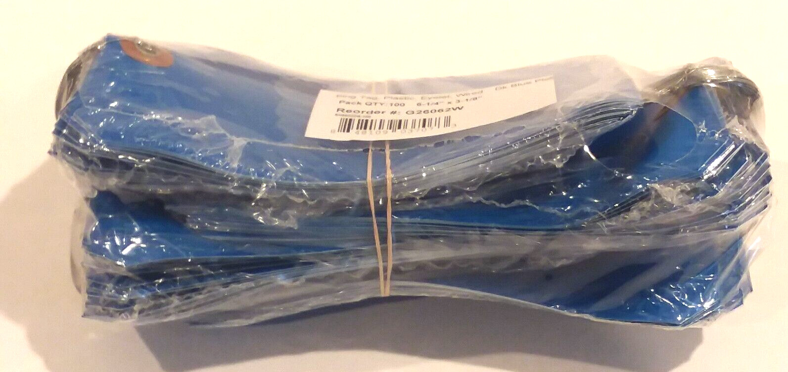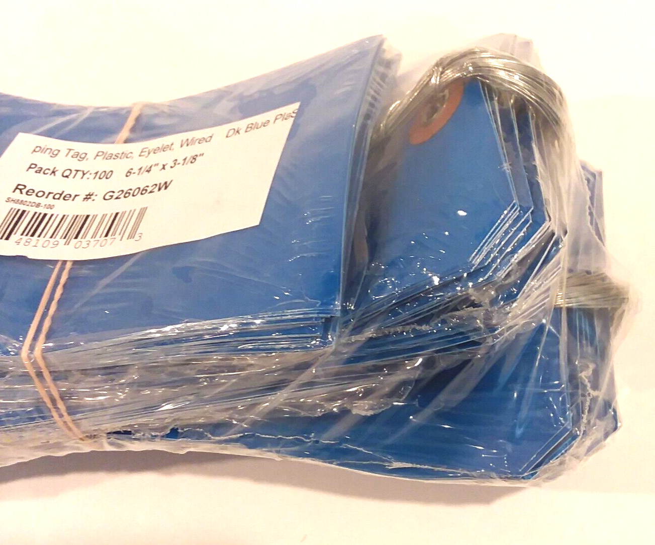 6 1/4 x 3 1/8 BLUE Plastic Shipping Tags PreWired Waterproof ID Asset 100 ct