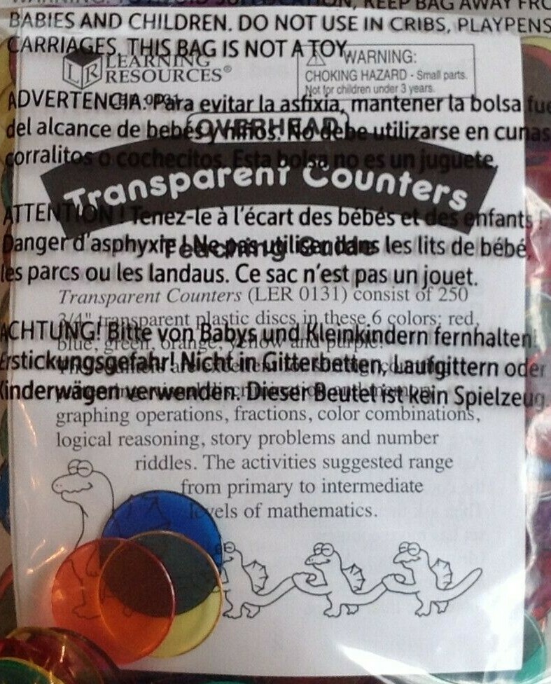 Lot of 2 Transparent Counters for Bingo Chips Math Assorted Colors 250 per bag