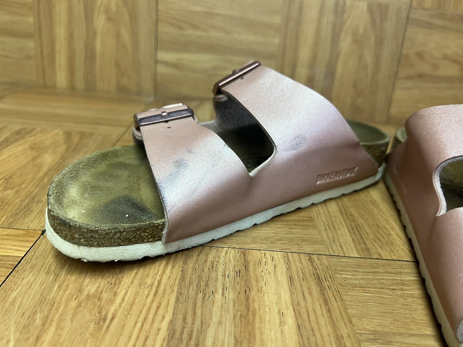 как выглядит RARE  Birkenstock Arizona Rose Pink White Sandals Sz 37 L6-M4 Slides Germany фото