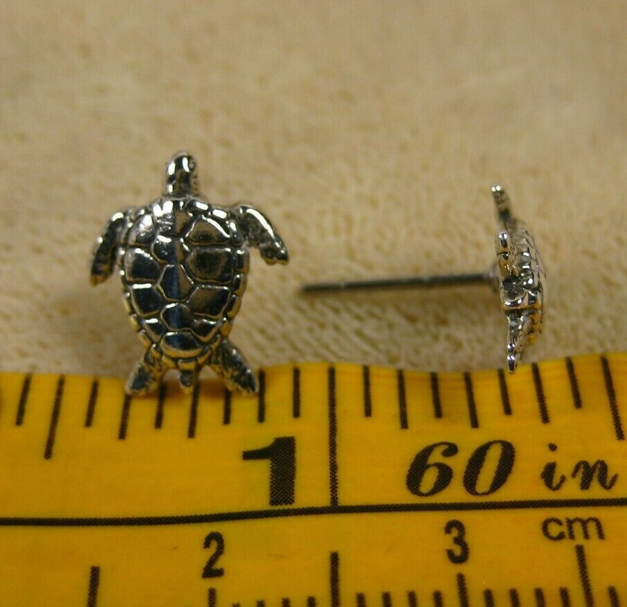 как выглядит Cute Adorable Lovable Polished Sterling Silver Sea Turtle Stud Post Earrings 925 фото