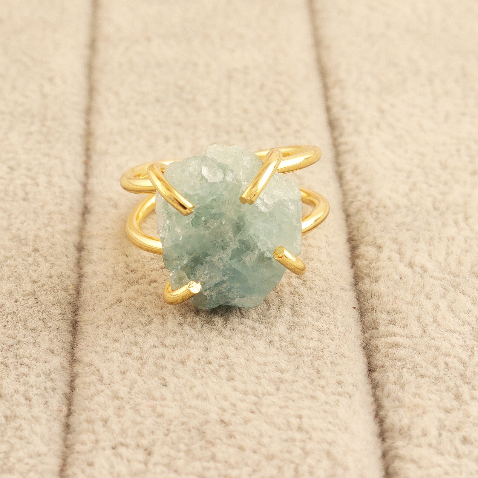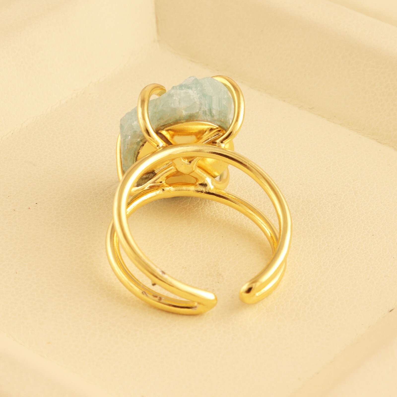 как выглядит Aquamarine Rough Double Layer Ring Yellow Gold Plated Prong Set Adjustable Ring фото