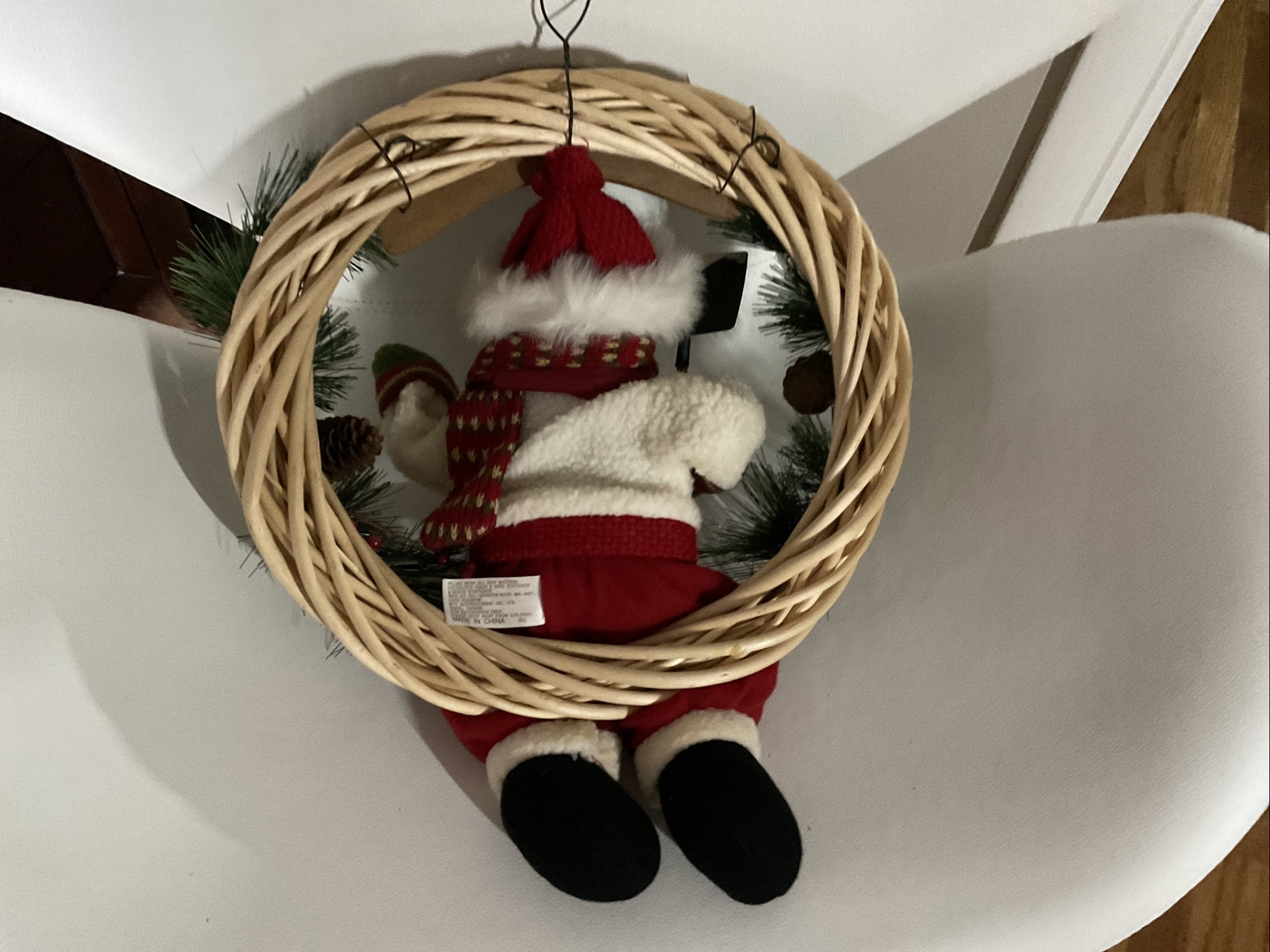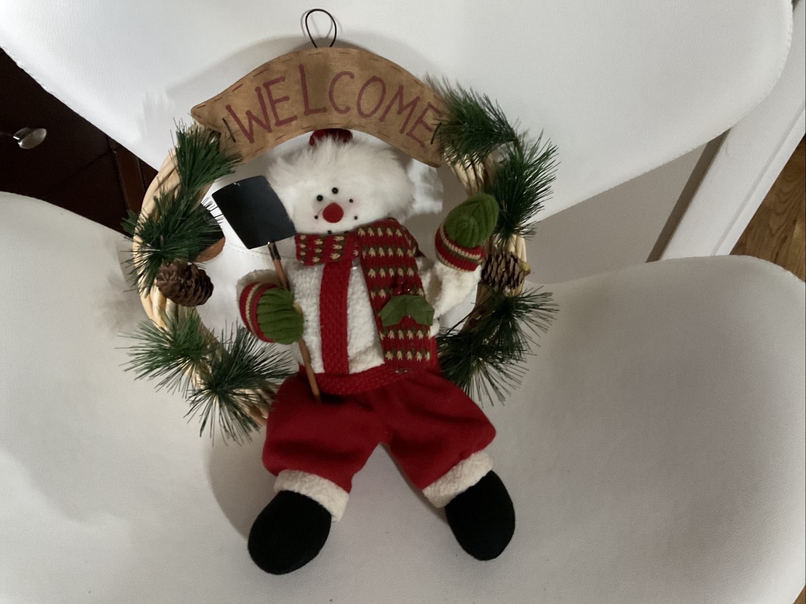 как выглядит Winter Wreath-Dressed Snowman With Snow Shovel-says Welcome-14 Inch Diameter фото