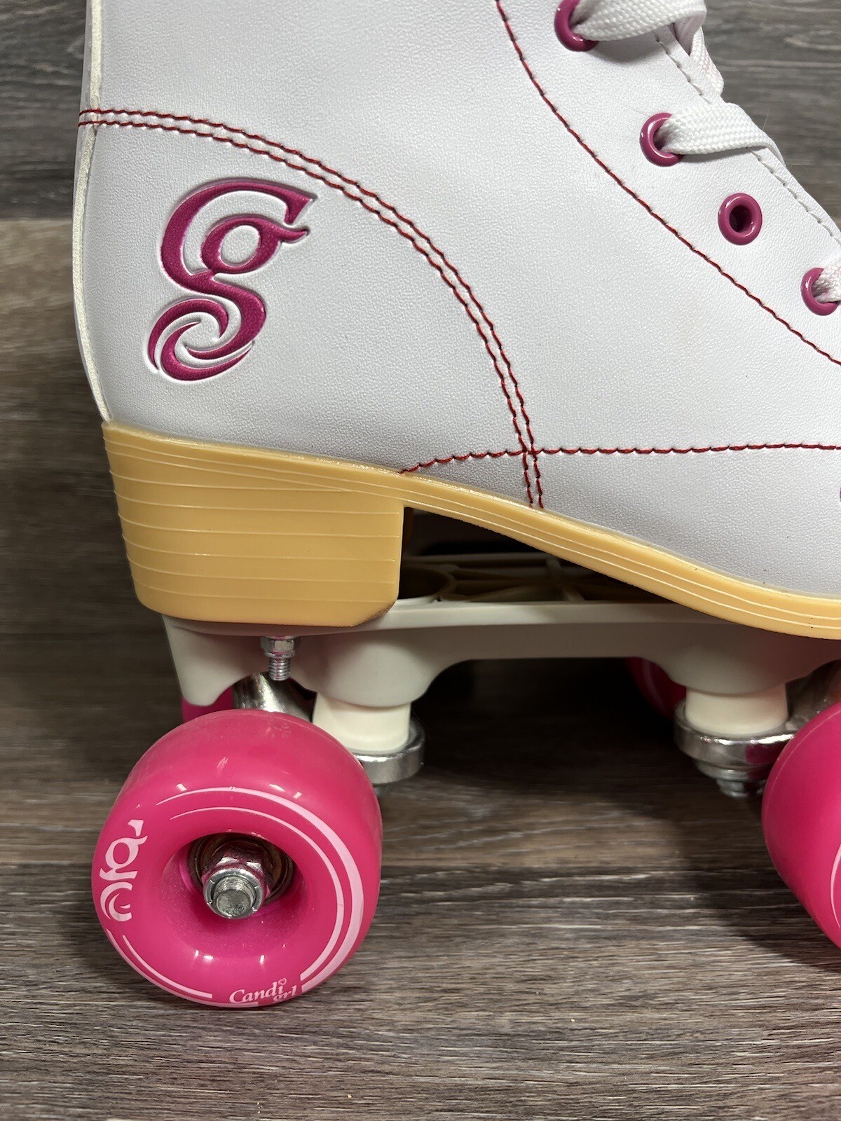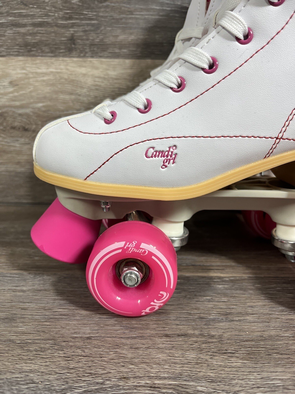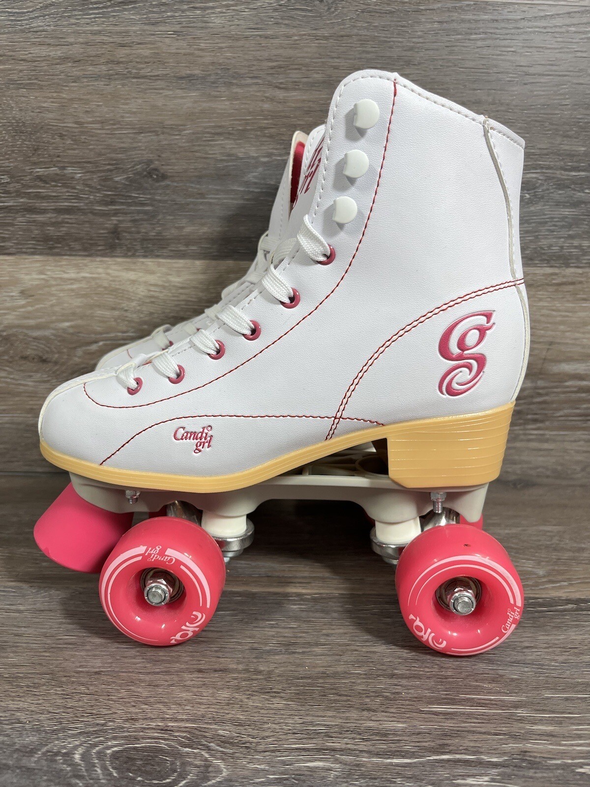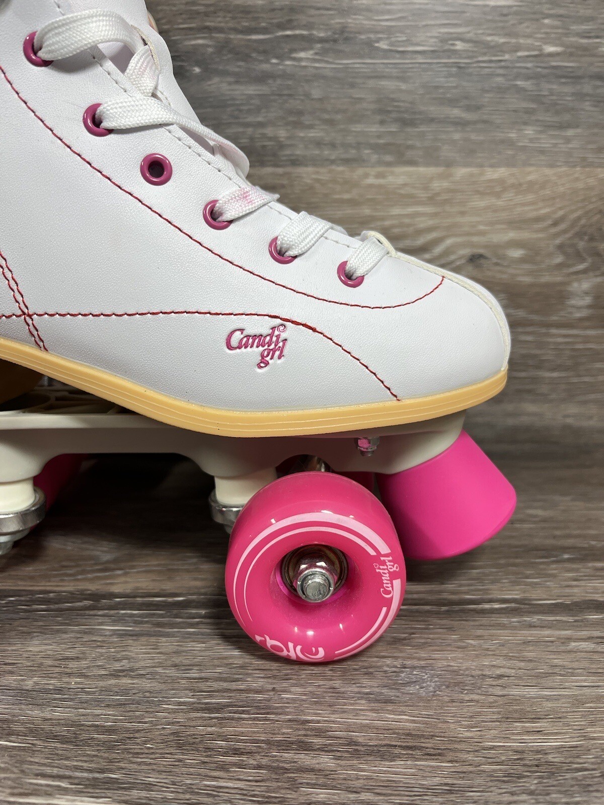 Roller Derby Candi Girl Quad Artistic Roller Skates Suede Size 6 White Pink
