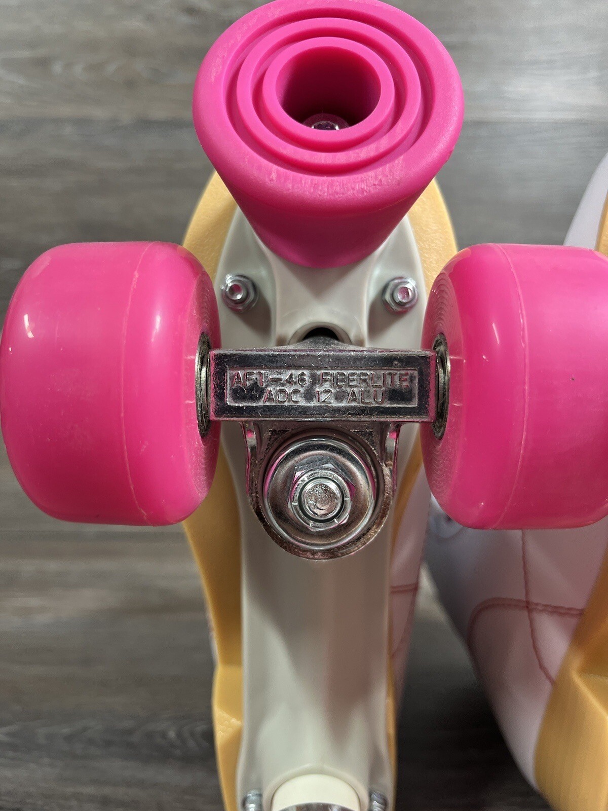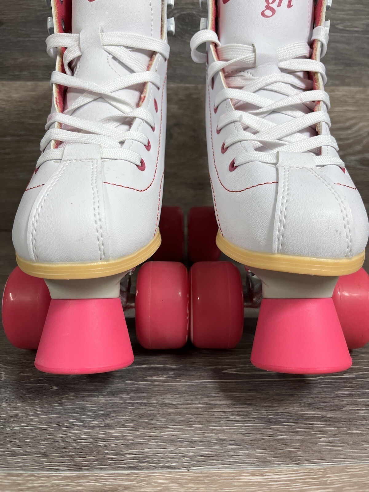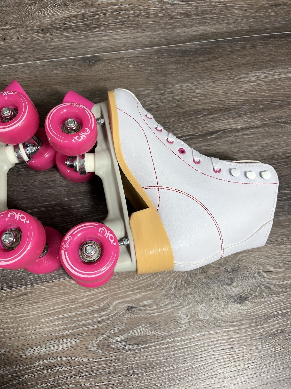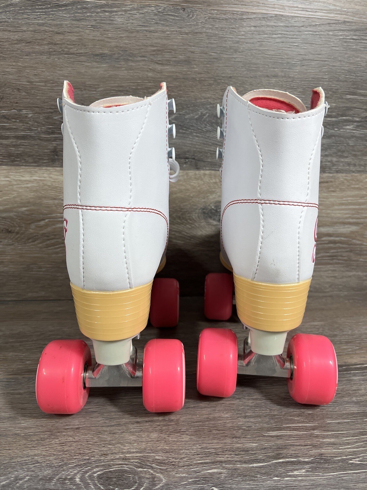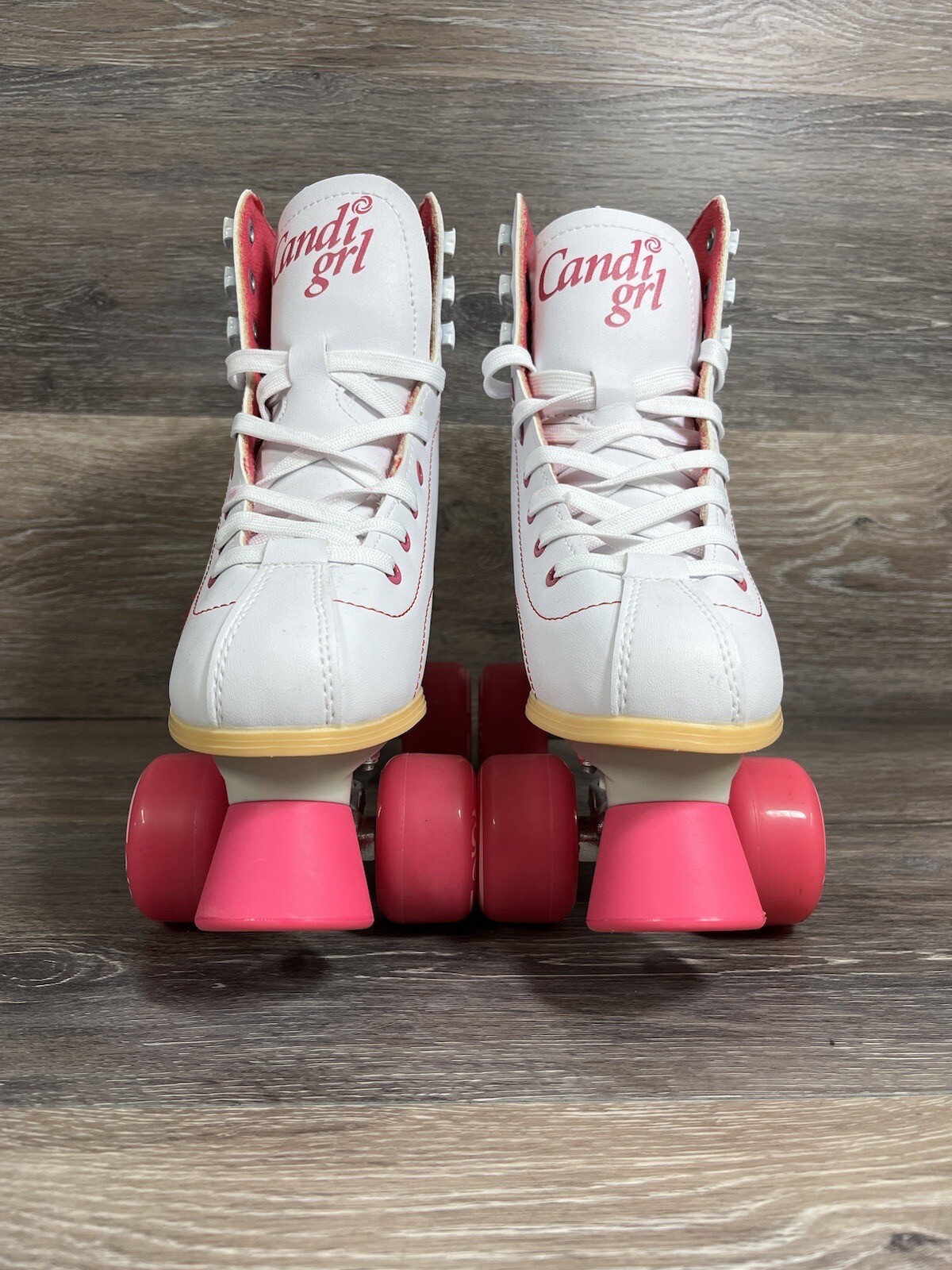Roller Derby Candi Girl Quad Artistic Roller Skates Suede Size 6 White Pink