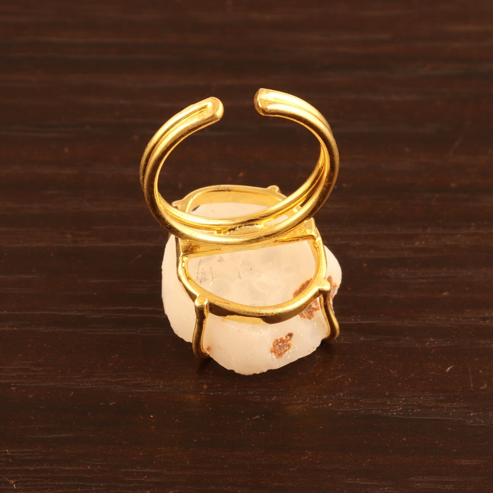 как выглядит White Natural Geode Druzy Gold Plated Double Layer Band Adjustable Ring For Her фото