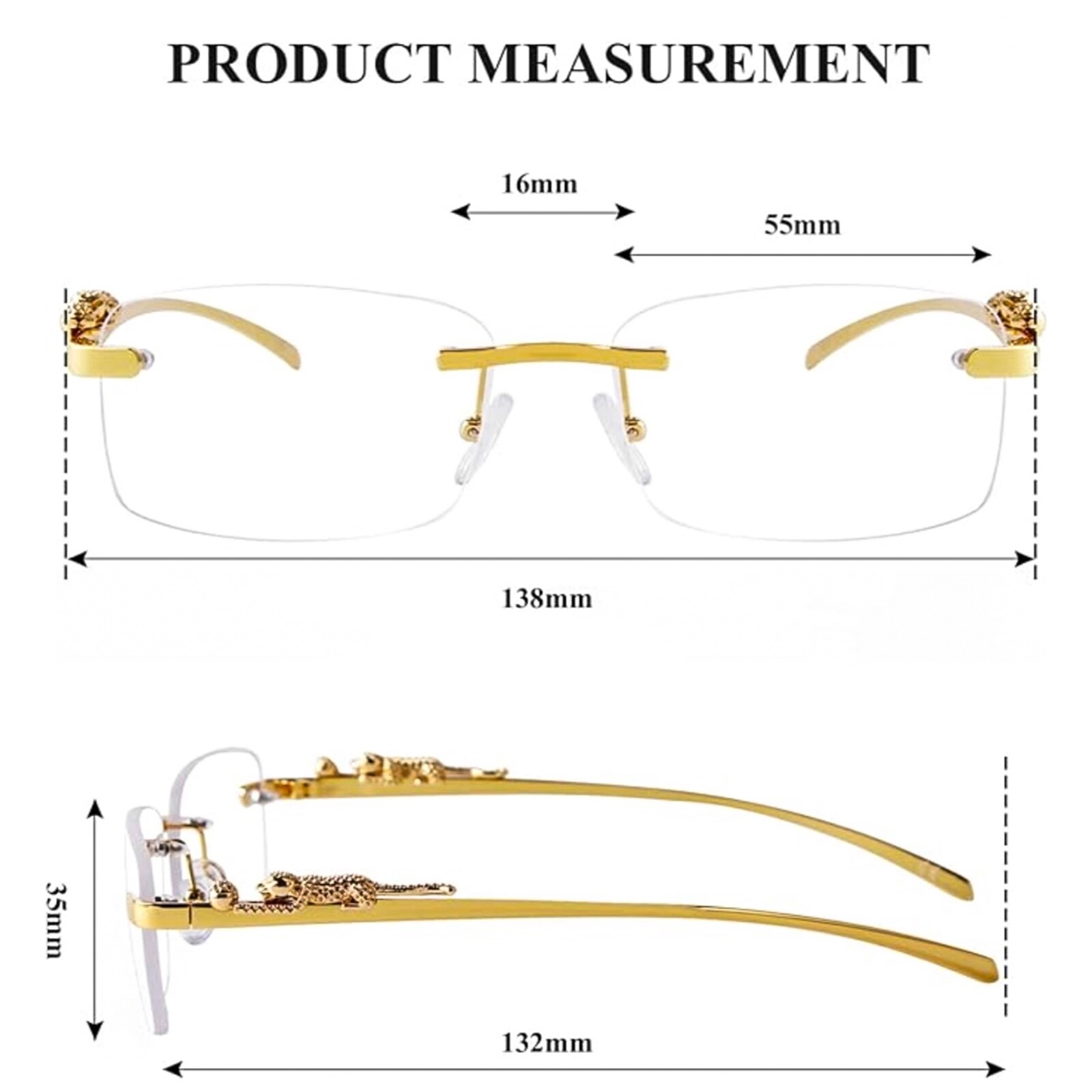 как выглядит Mens Luxury Leopard Clear Lens Gold Frame Hip Hop Retro Rectangular Glasses фото