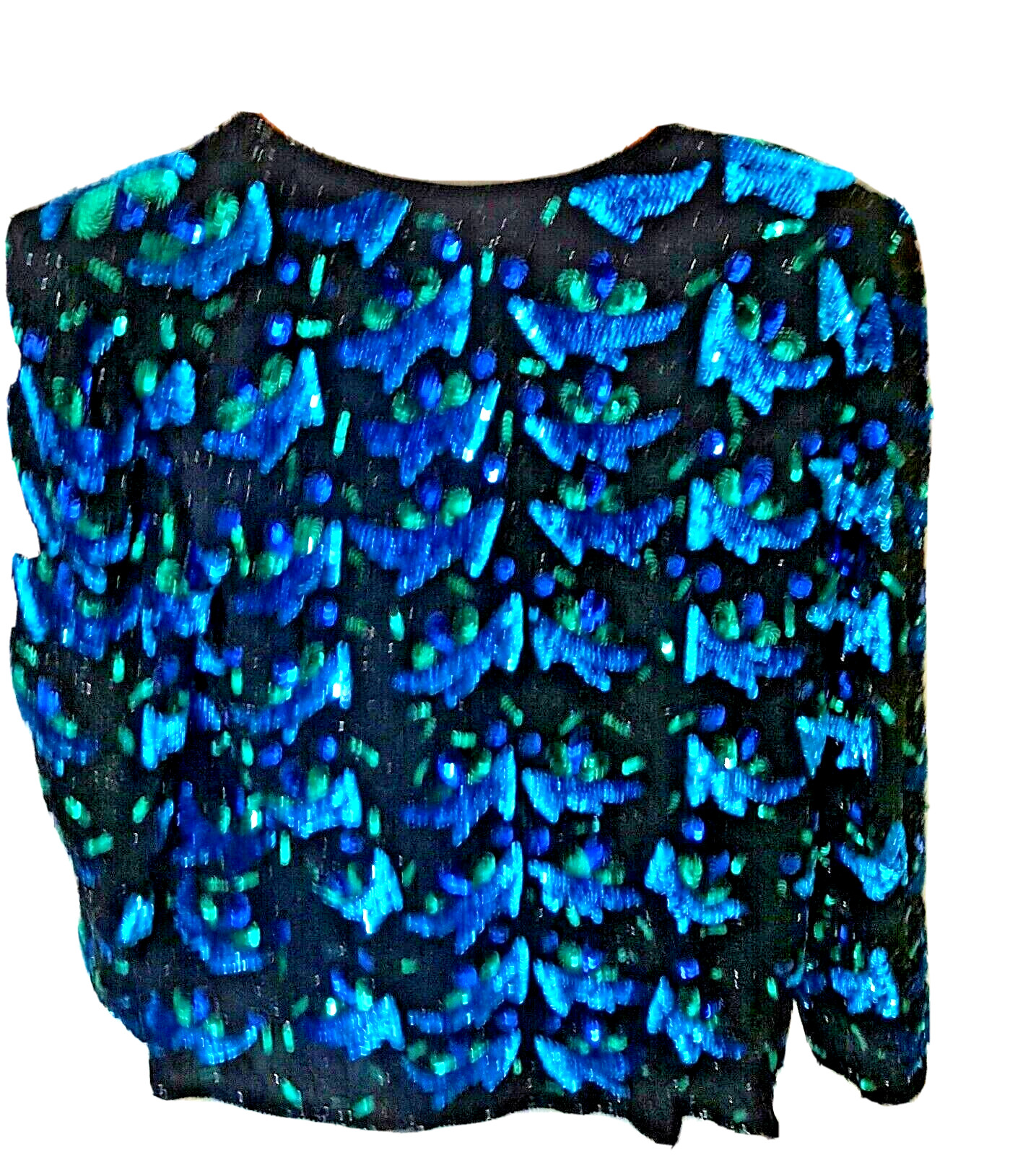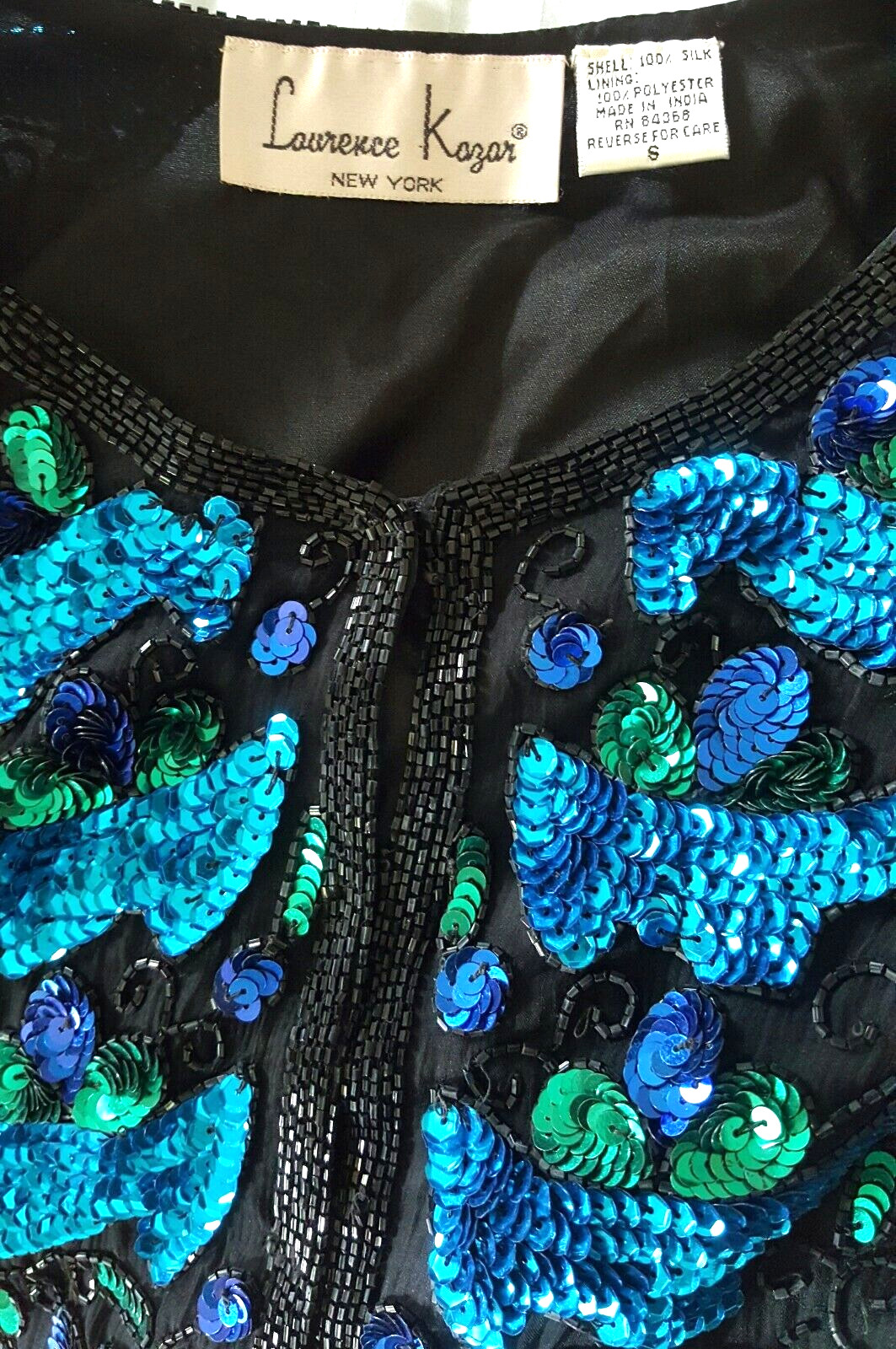 VINTAGE LAURENCE KAZAR NEW YORK SILK BEADED SEQUINED EVENING JACKET SZ:S, 2X