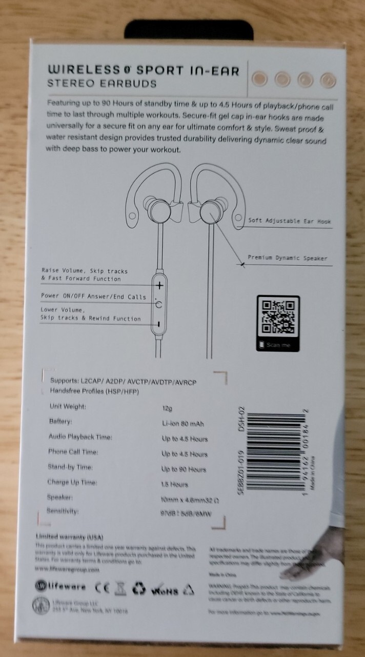 NEW SoundBound Wireless Sport In-Ear Stereo Black Earbuds Bluetooth Compatible