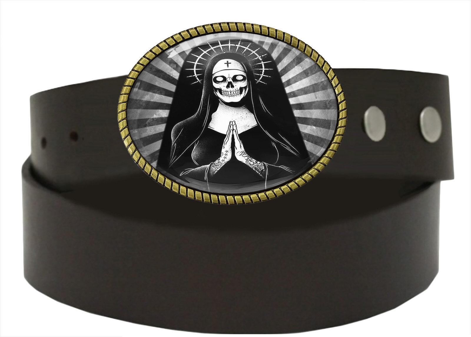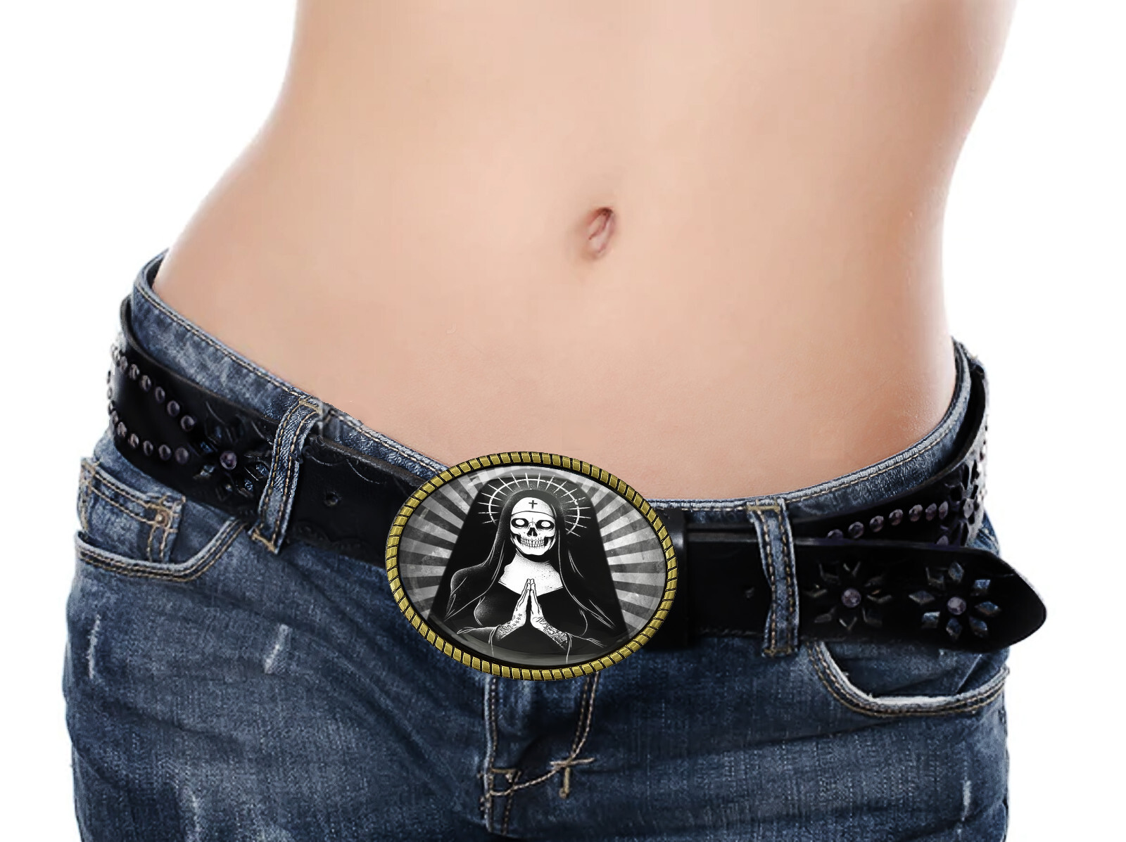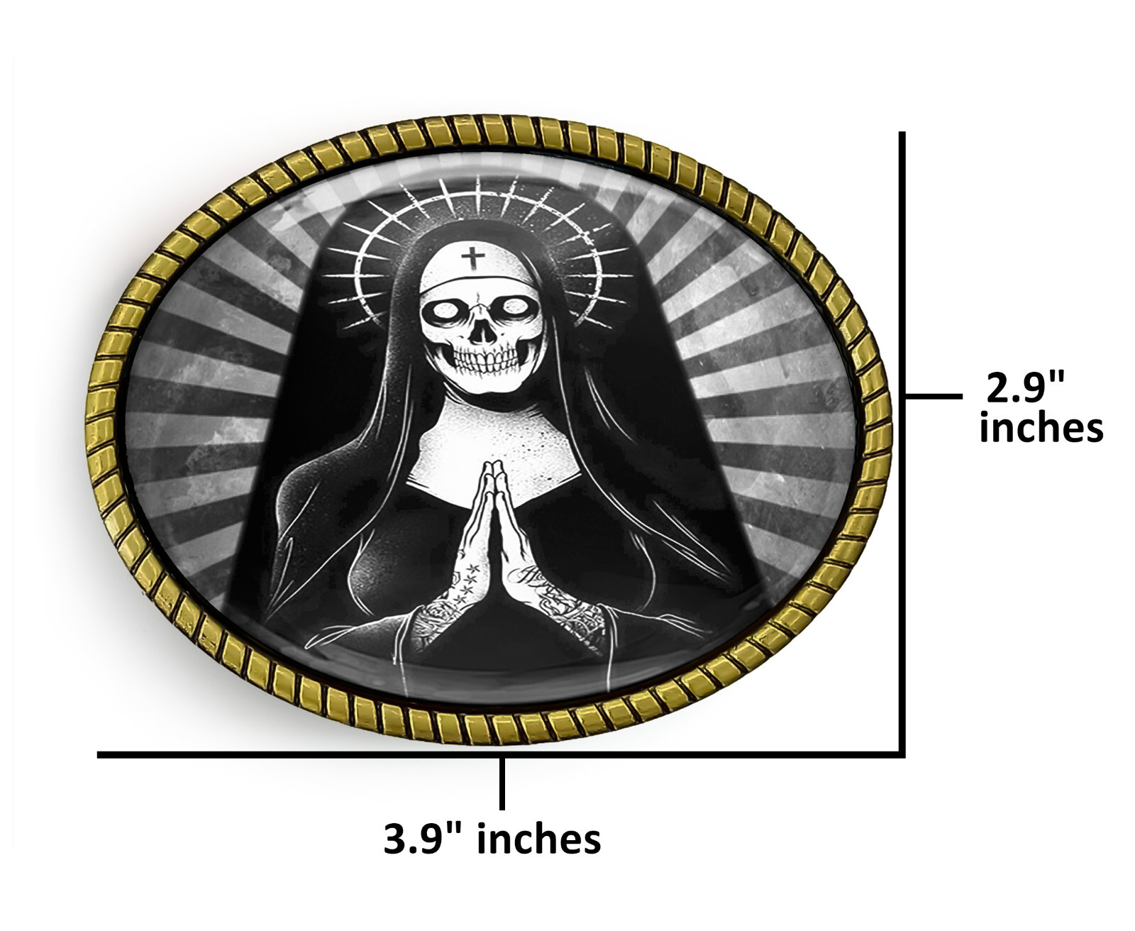 Santa Muerte Belt Buckle - Day of the Dead Skull Handmade Belt Buckle - 119-2