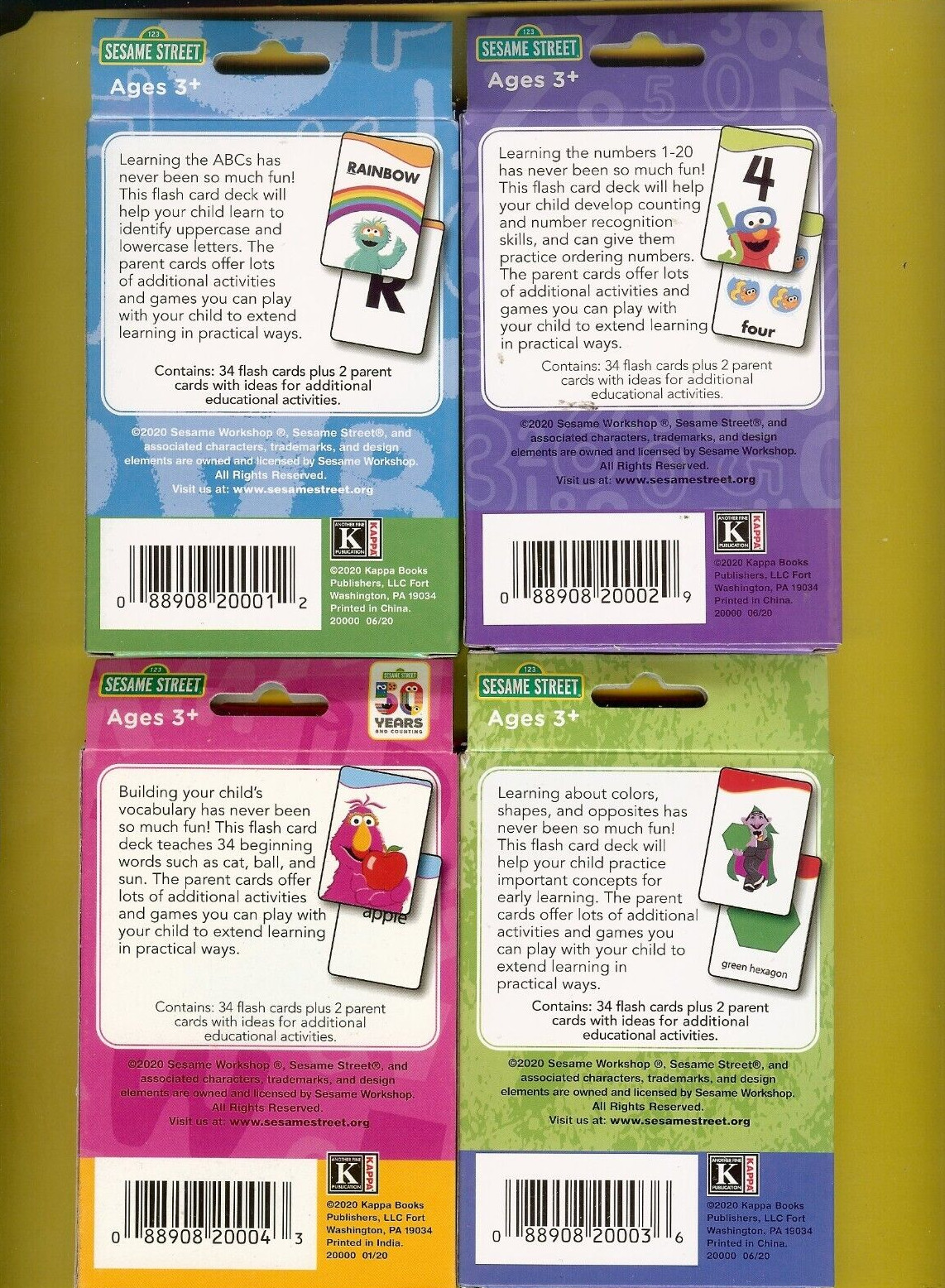 4 PACKS SESAME STREET FLASH CARDS - WORDS - NUMBERS - ABC's - COLORS -36 CARDS