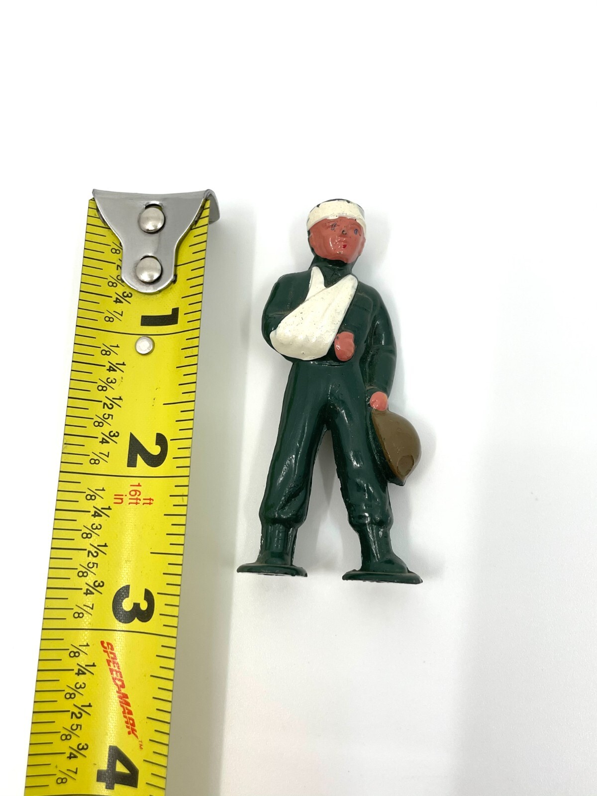 как выглядит Vintage Barclay Pod Foot B256 Green Uniform Soldier w/Wounded Head and Arm фото