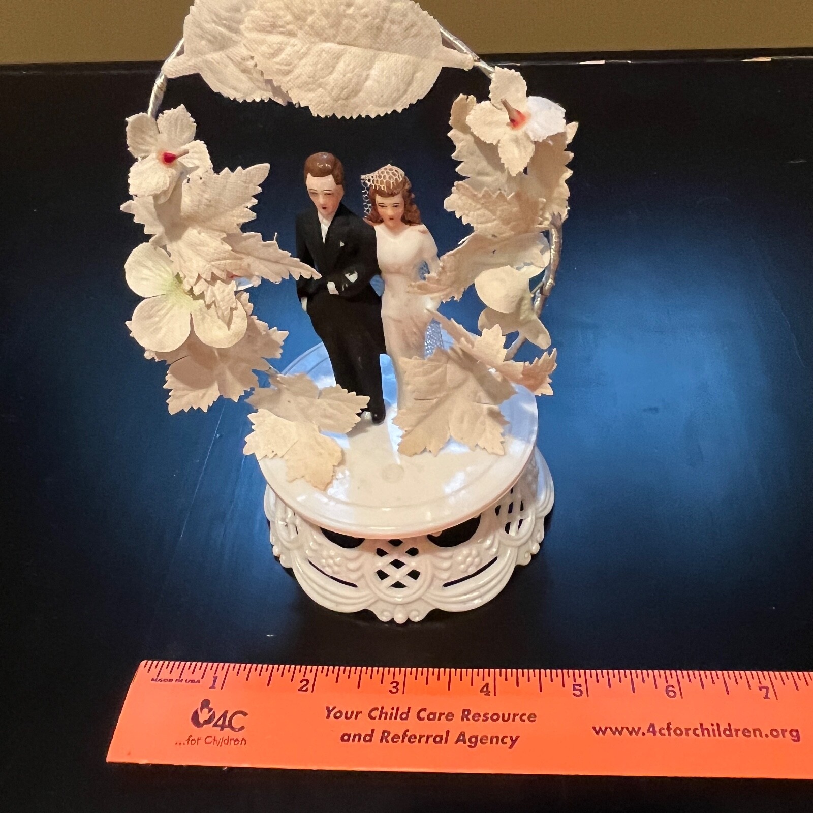 Vintage Bride Groom Cake Topper w/ Flowers leaf Arch 1940s IEC