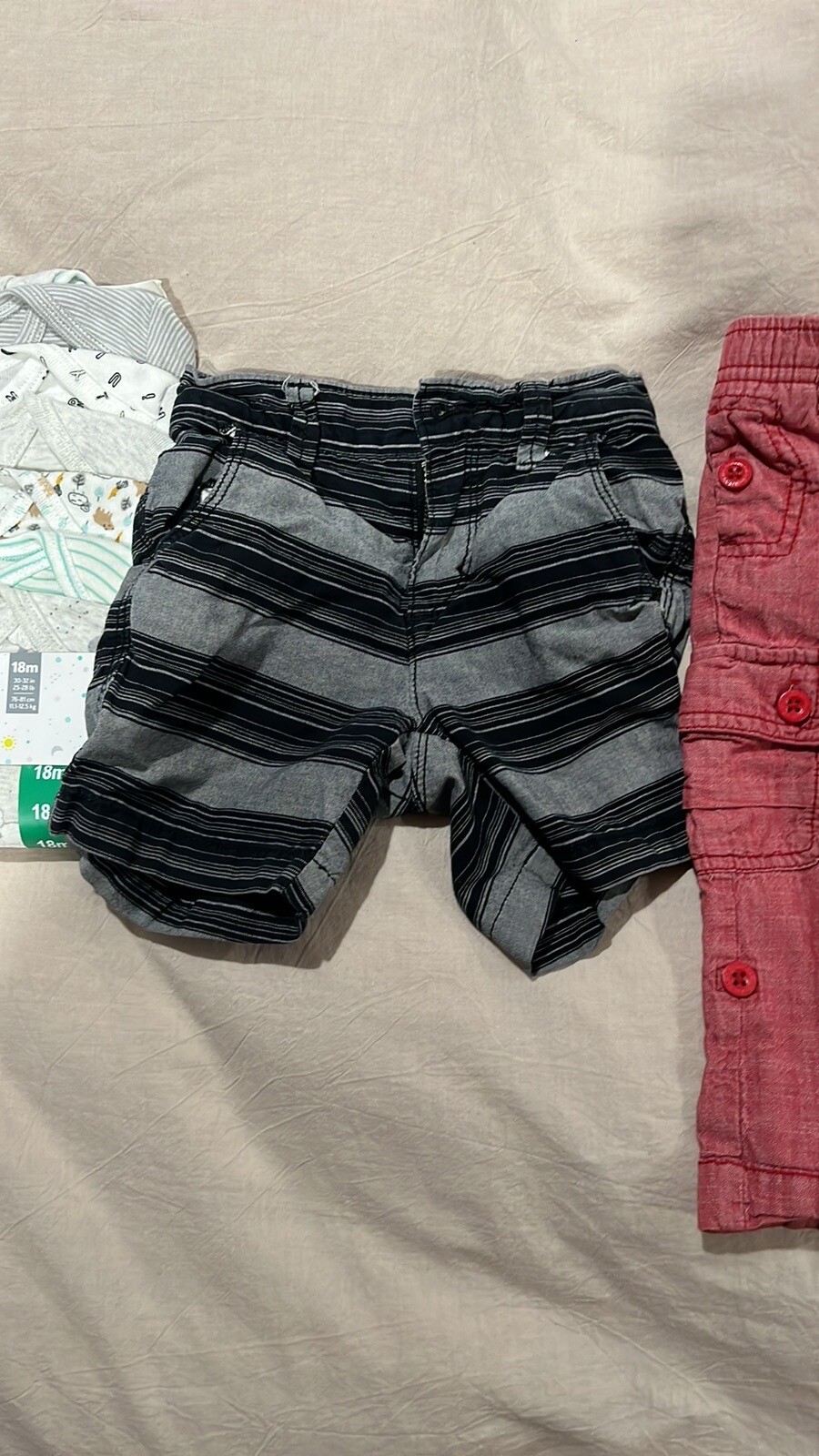 Lot Of Boys 6 Shirt Sleeve Bodysuits Shorts Pants, Size 18 Month