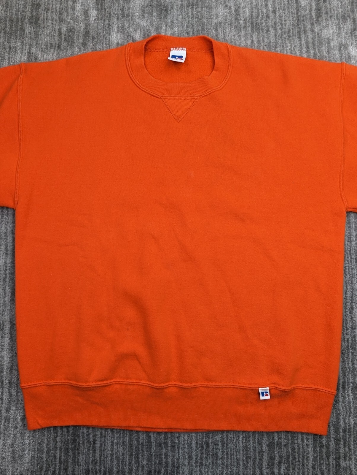 Vintage Russell Athletic Crewneck Sweatshirt Men's Large Orange Blank 50/50 90s