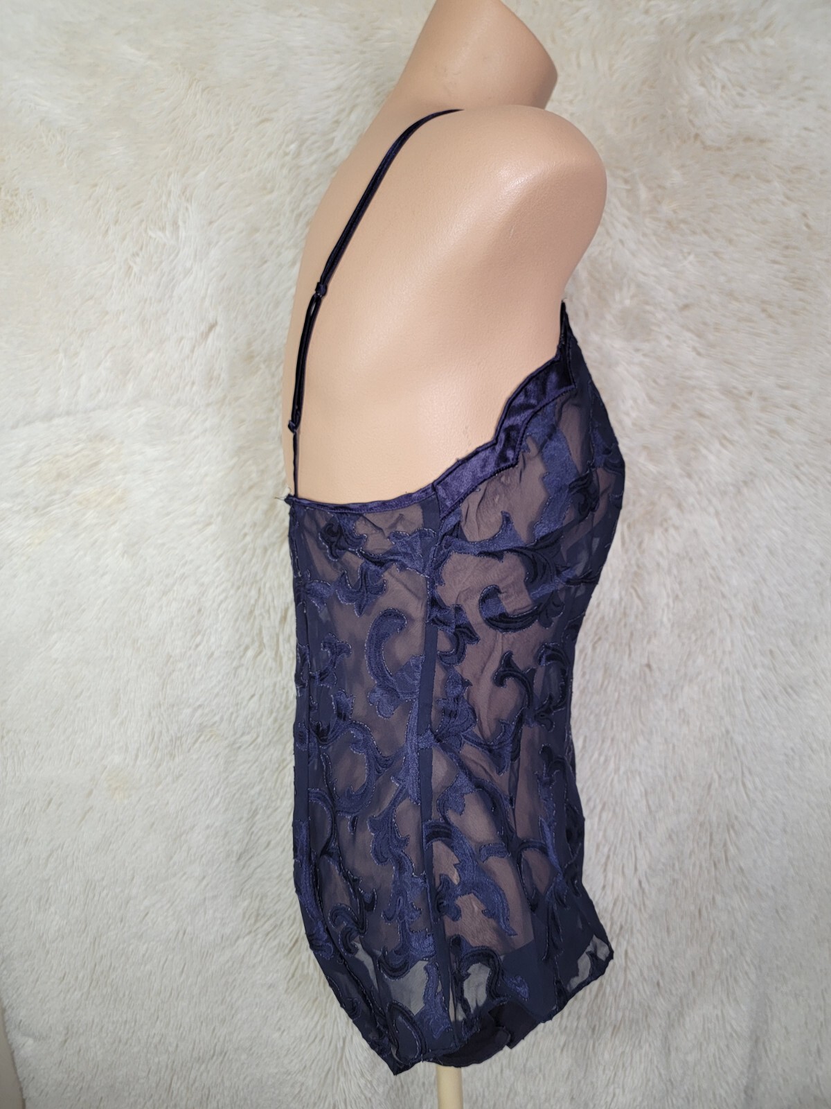 VTG Victoria s Secret Size S Gold Label Semi Sheer Teddy Romper Playsuit Navy I