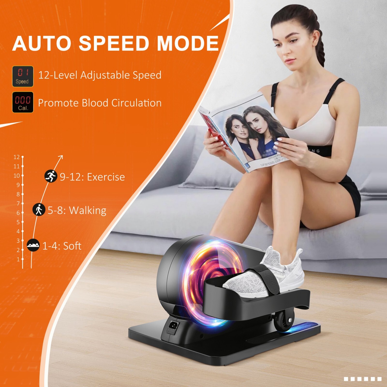 Under Desk Elliptical Machine Manual-Auto Dual Mode Ellipse Leg Pedal Exerciser