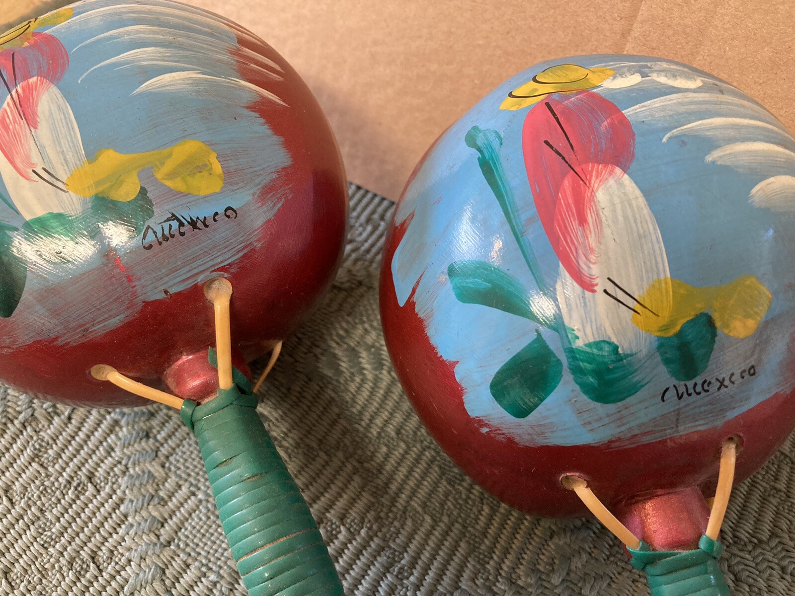 как выглядит Vtg PINK Authentic Mexico Maracas Shaker Instruments Folk Art Hand Painted Gourd фото