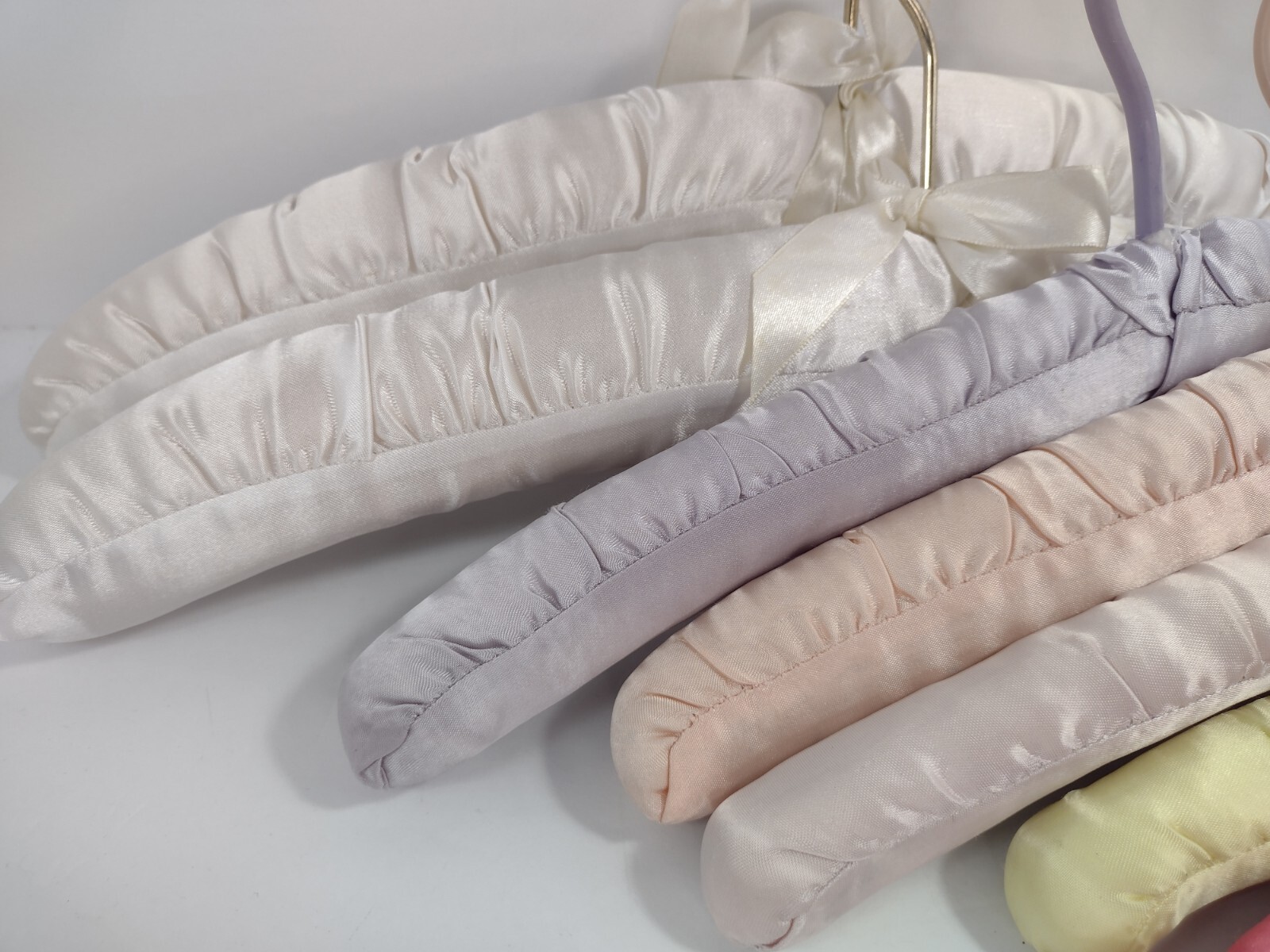 Lot Of 8 Vintage Satin Clothes Hangers 60s - 70s Grannycore Hippie Retro