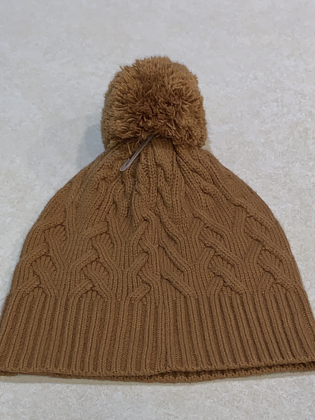 FRYE Women s Cable Knit Beanie Pom Hat Brown New