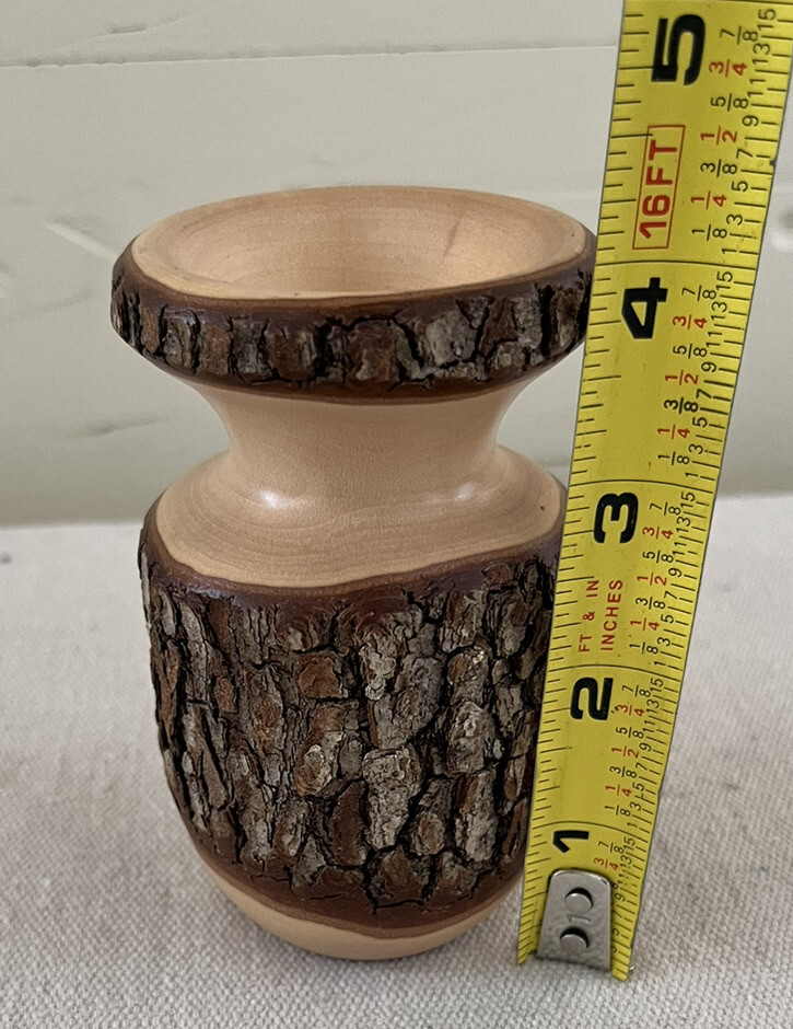 Turned Wood Dogwood George Looney Signed Live Bark Raw Edge Bud Vase