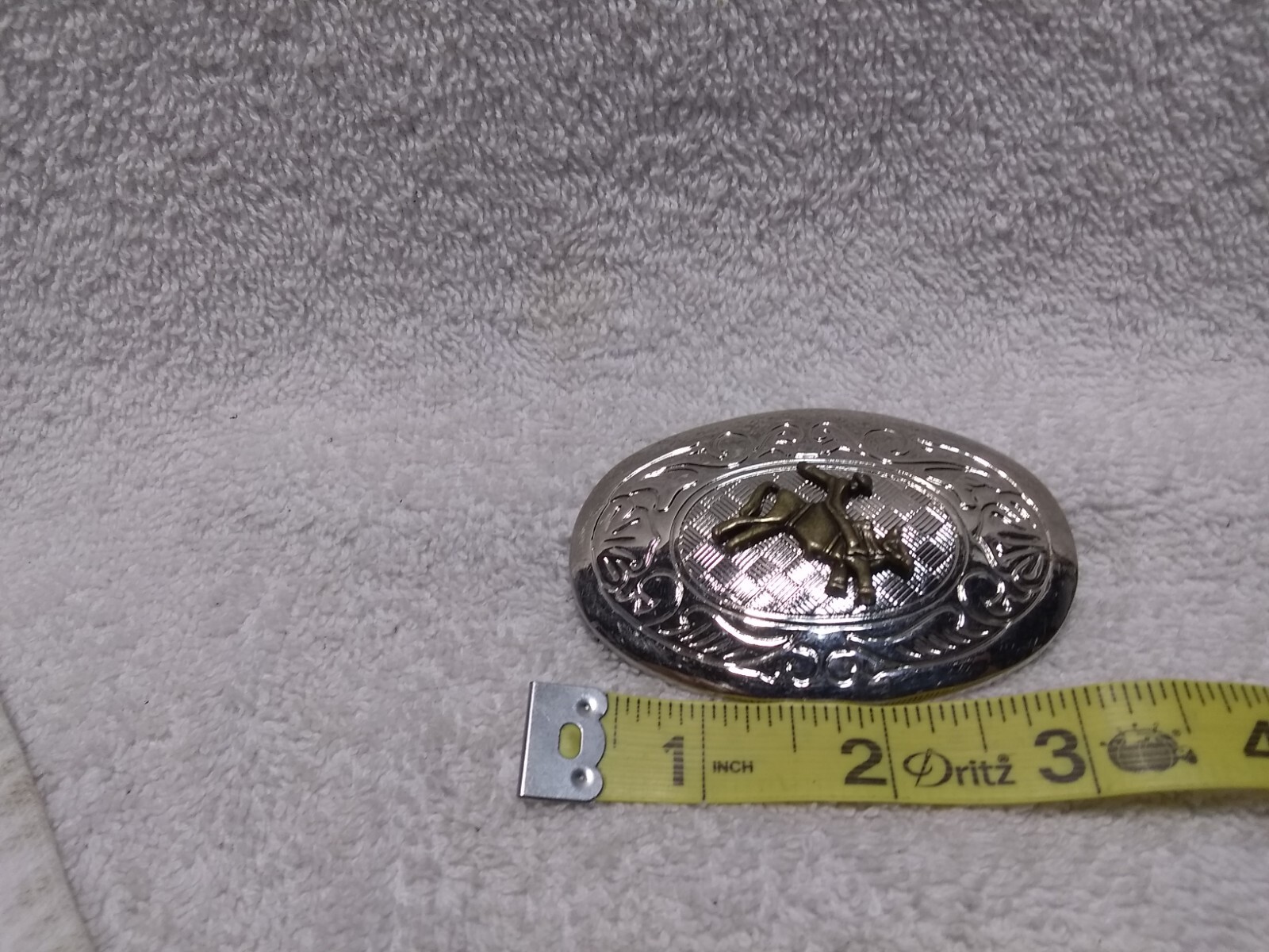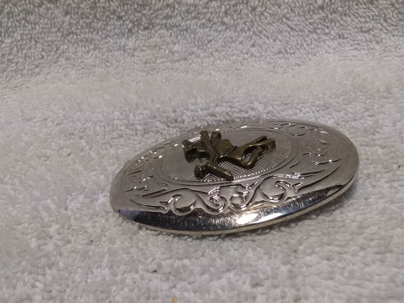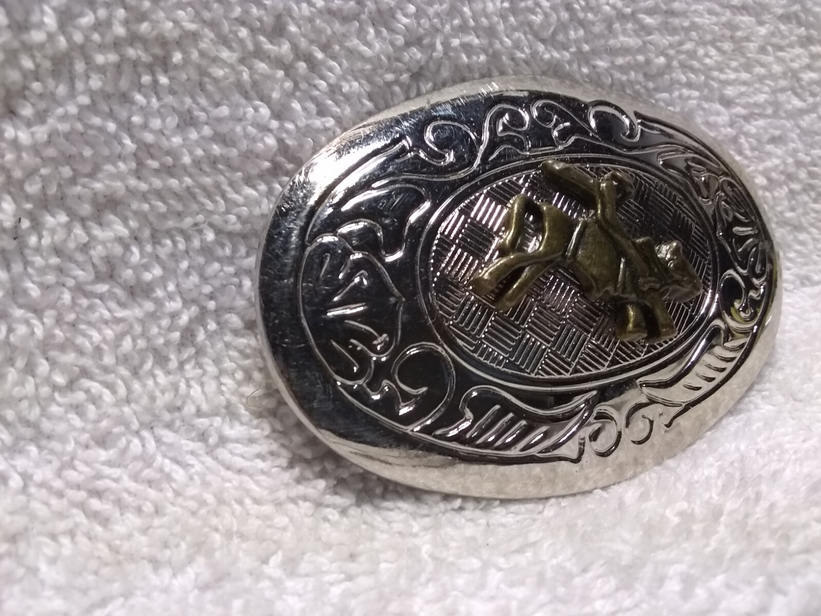 как выглядит Shiny Gold Cowboy Bucking Bronco On Silver Engraved Belt Buckle Small Great фото